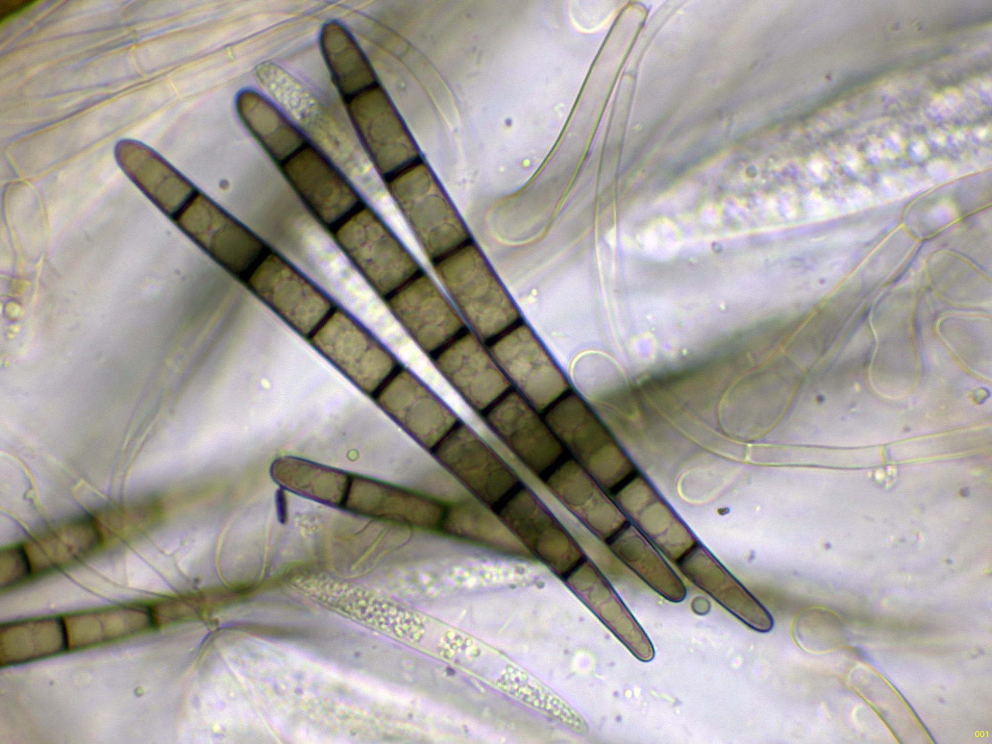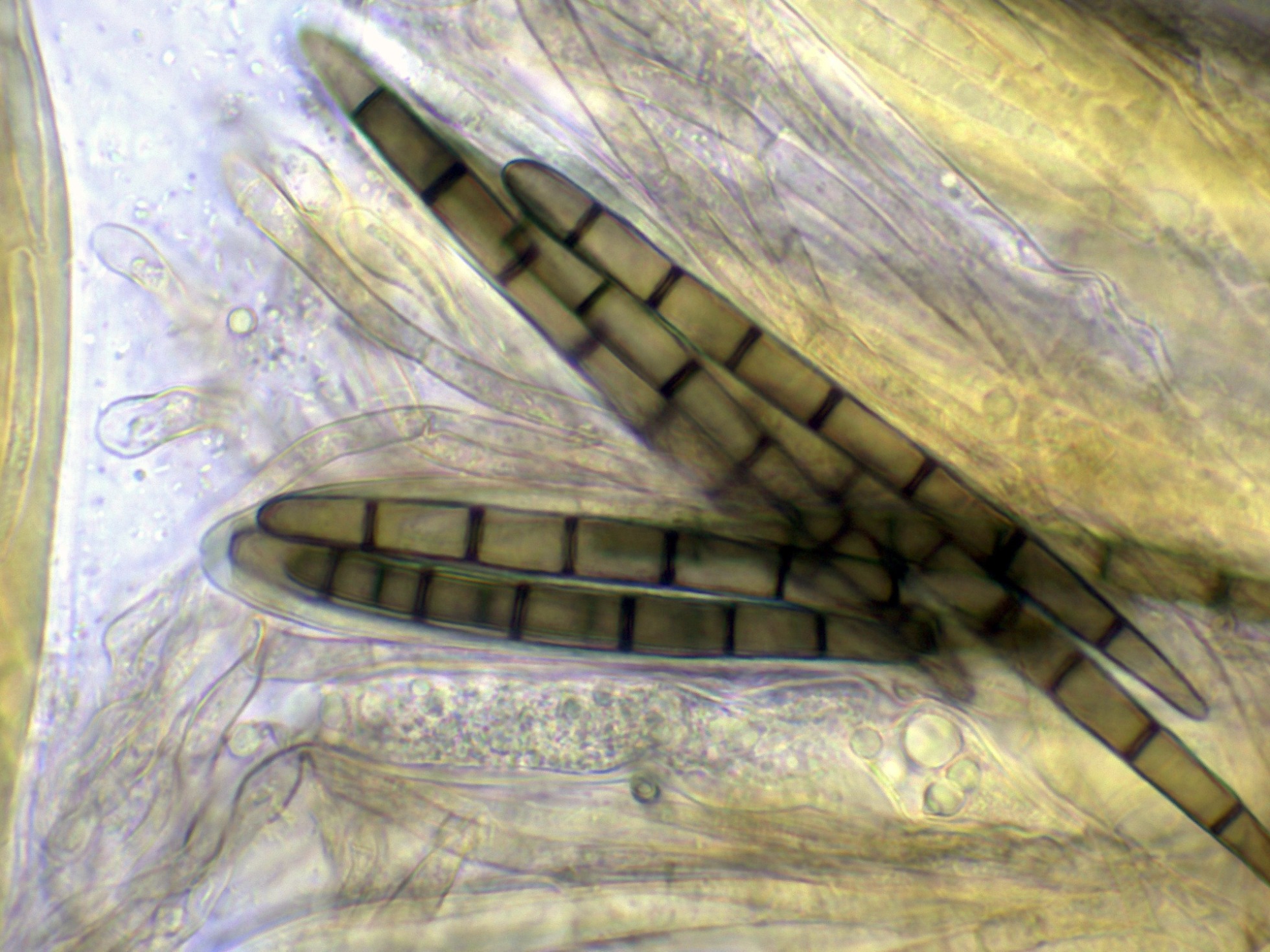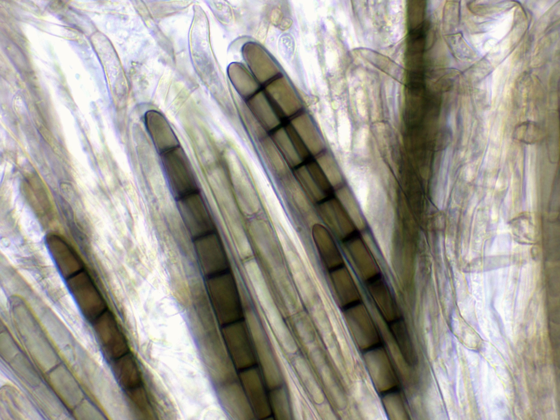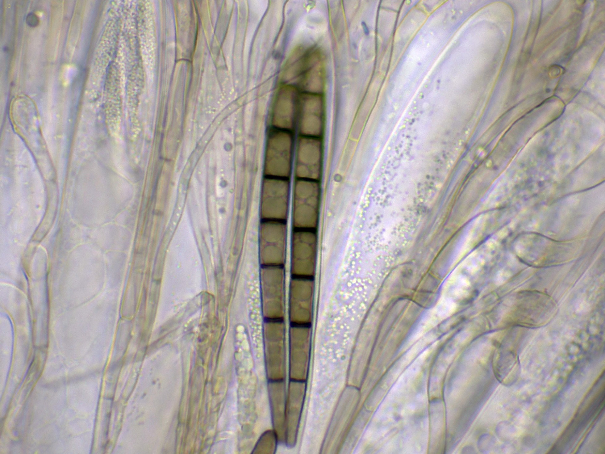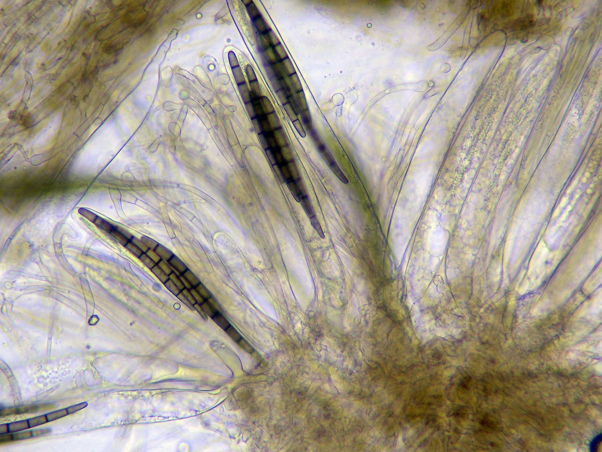 Las hifas del excípulo a 400 aumentos en agua: