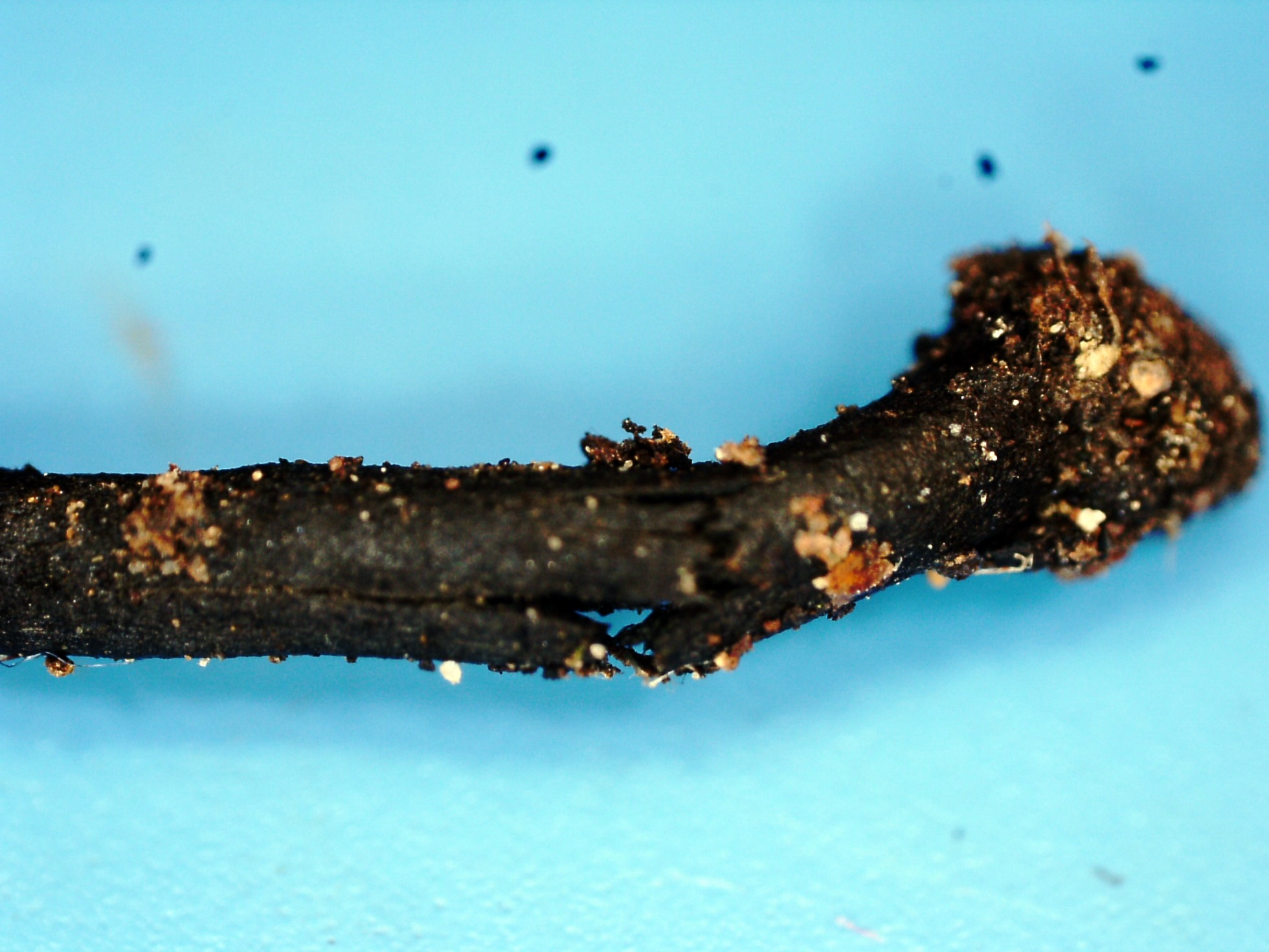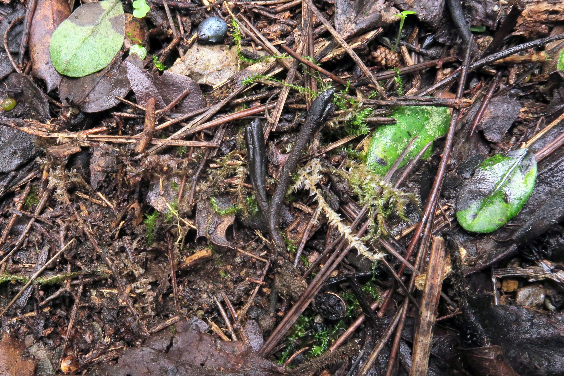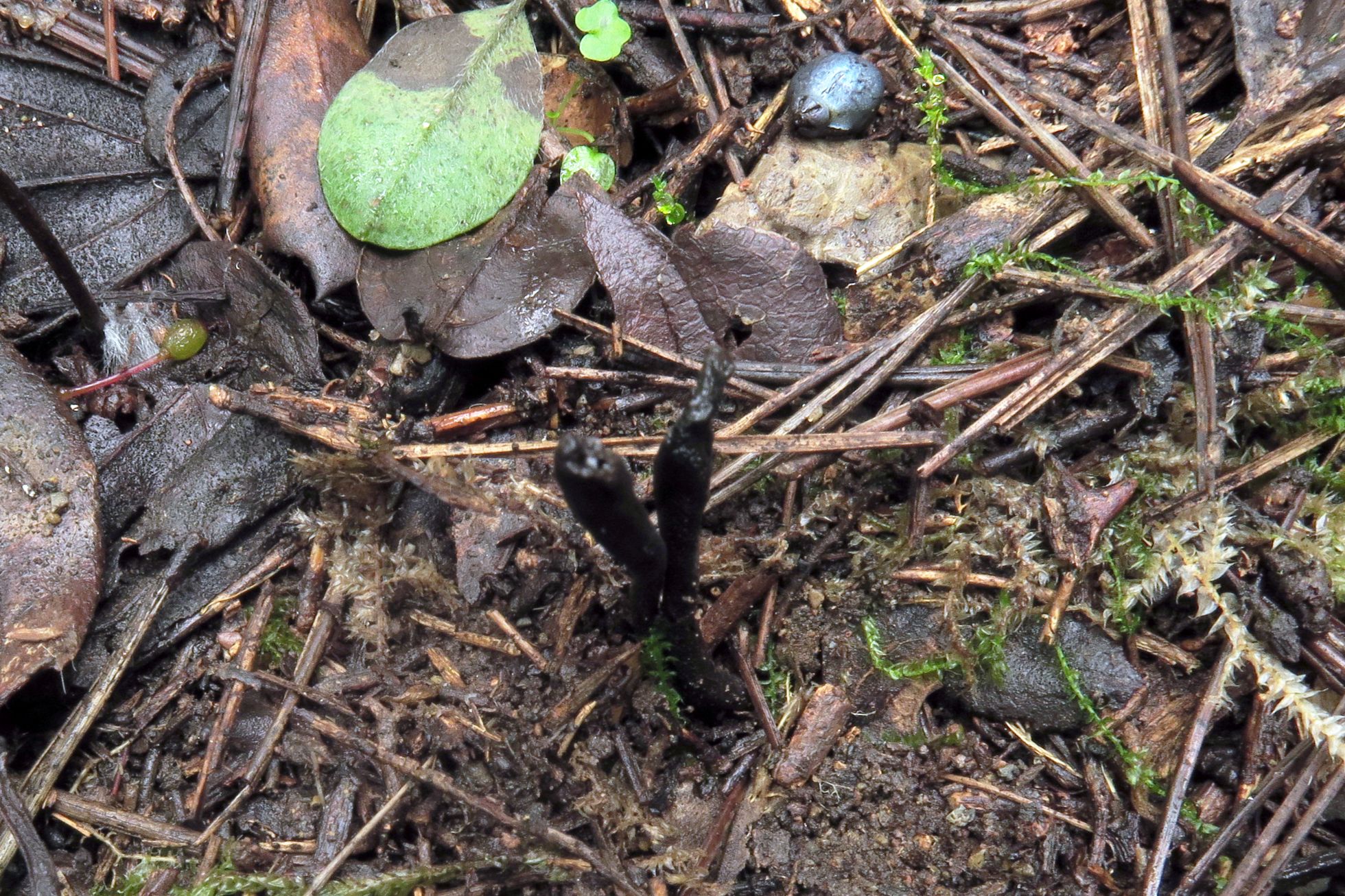 Un Geoglossum parecido al que presenté ayer, pero con la base del pie negra y esporas con un tamaño considerablemente mayor, el: