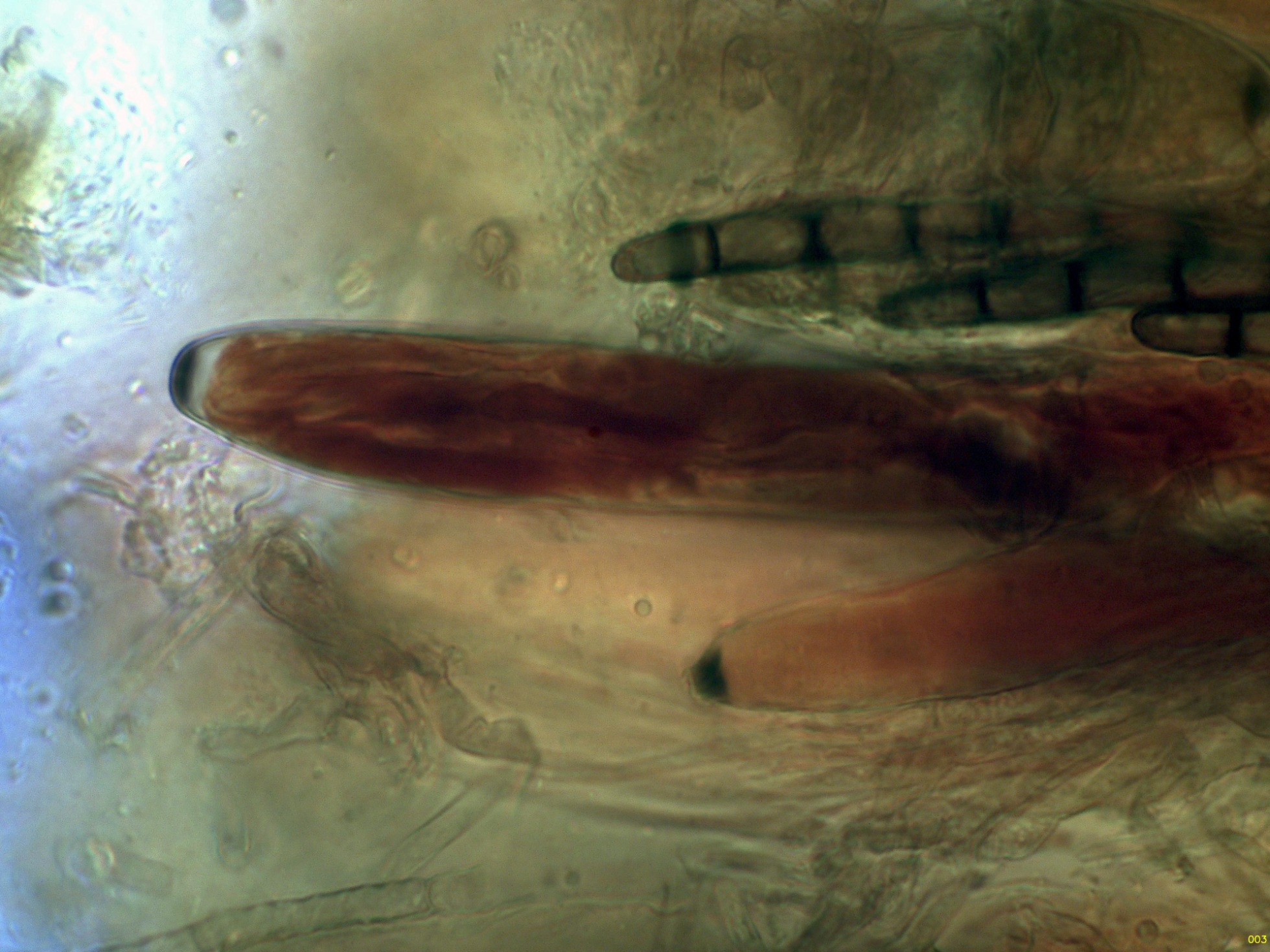 El himenio en Reactivo de Melzer a 400 aumentos: