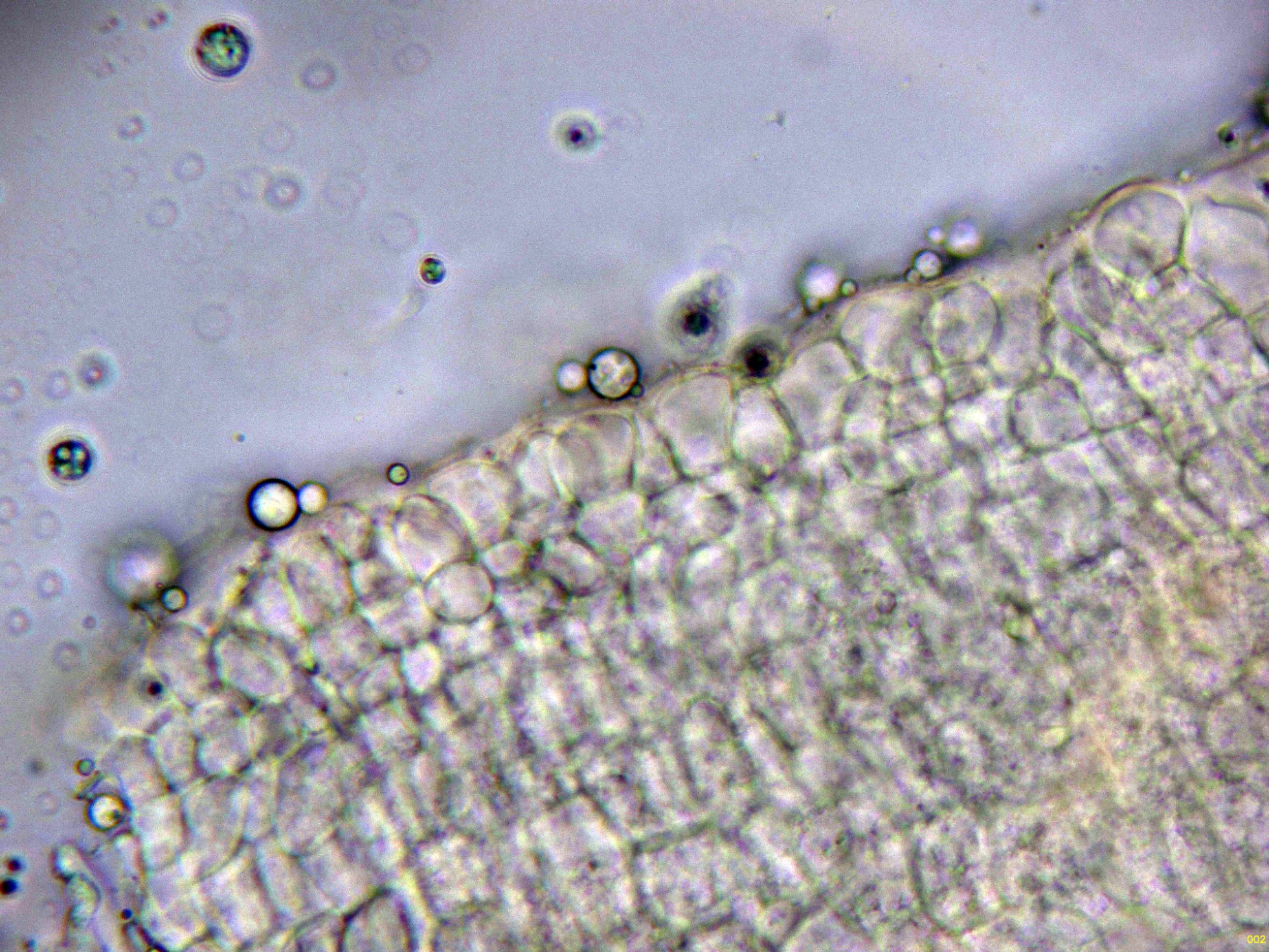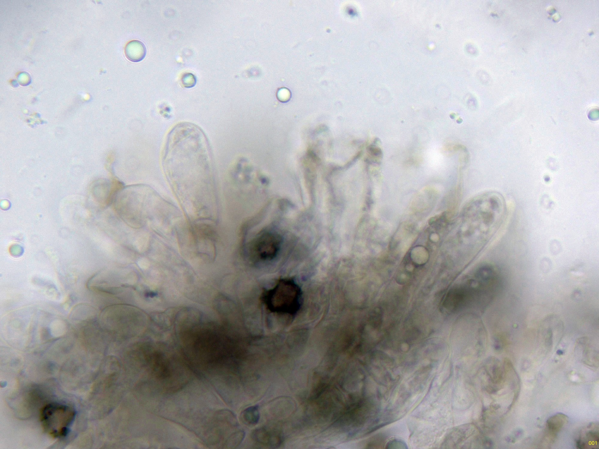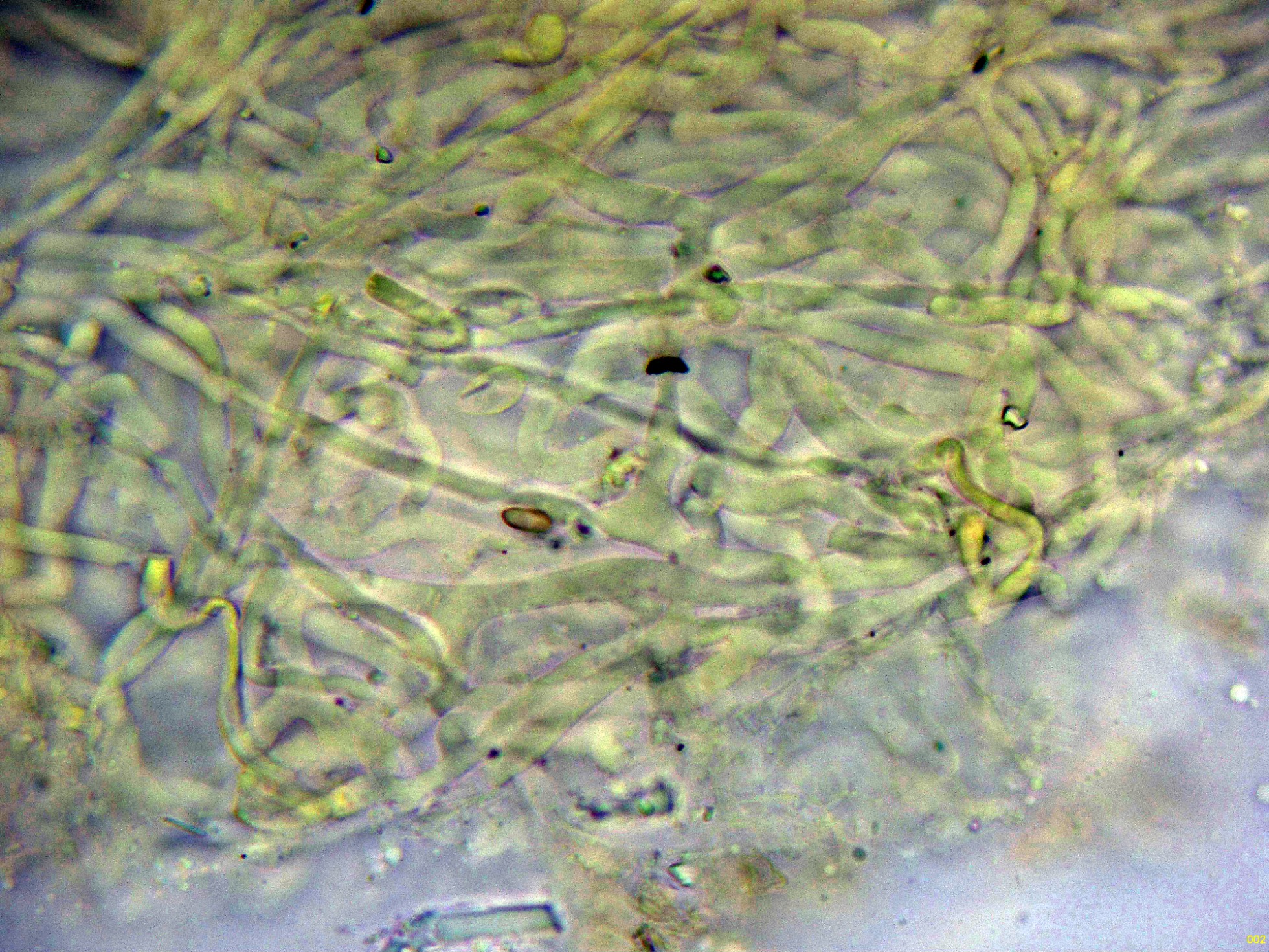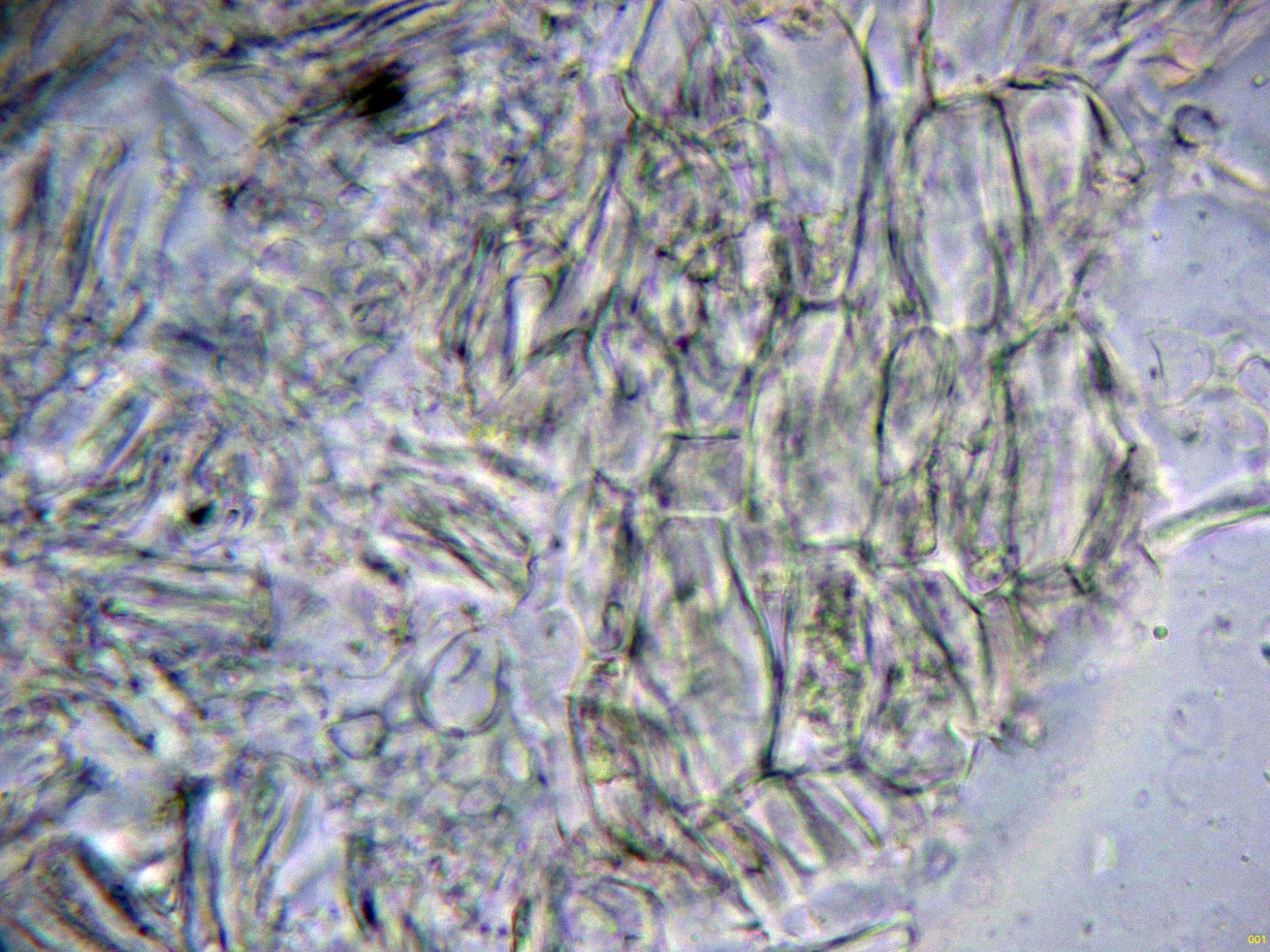 Las hifas del excípulo de textura irregular, más o menos rectangular en agua: