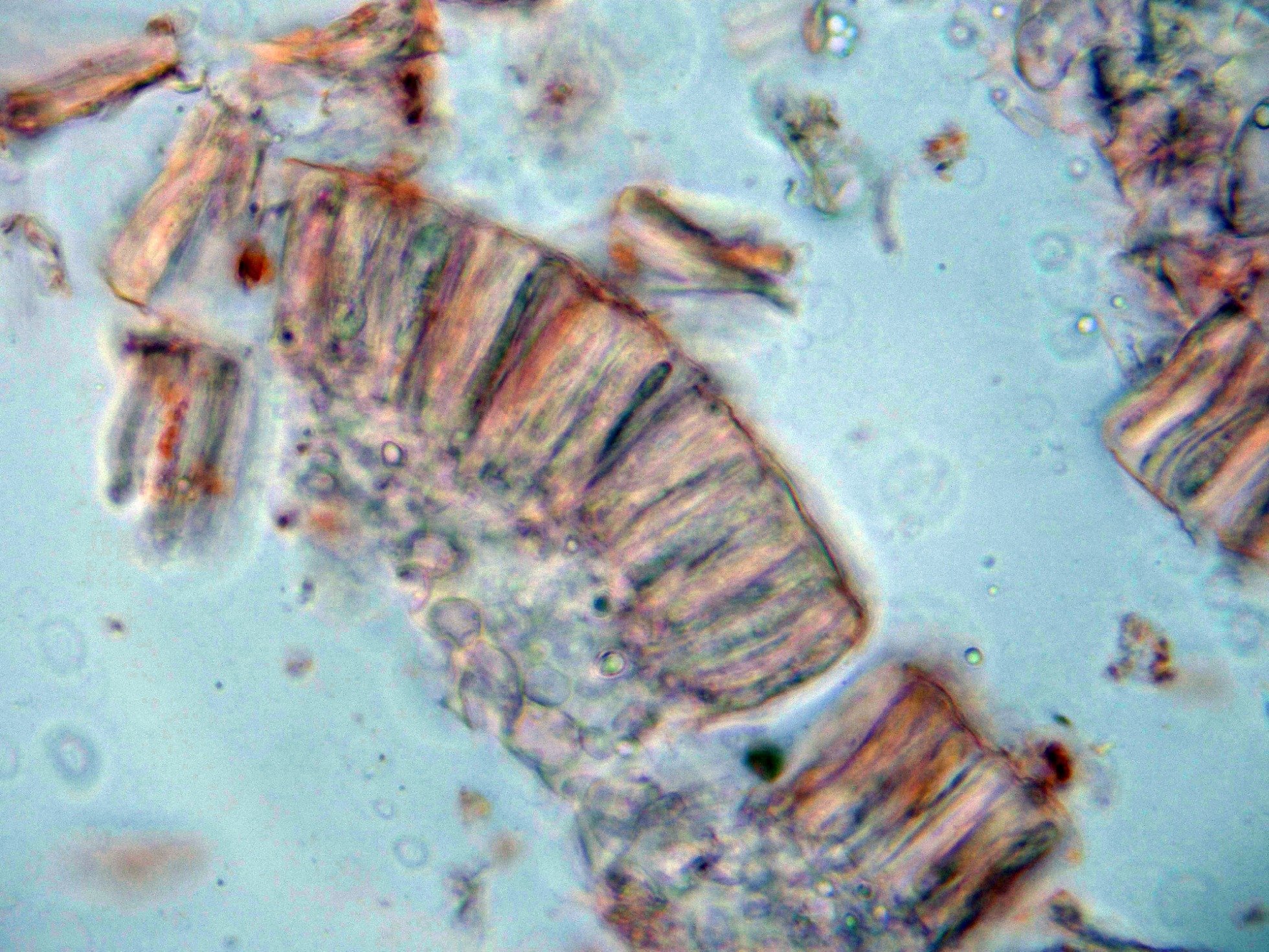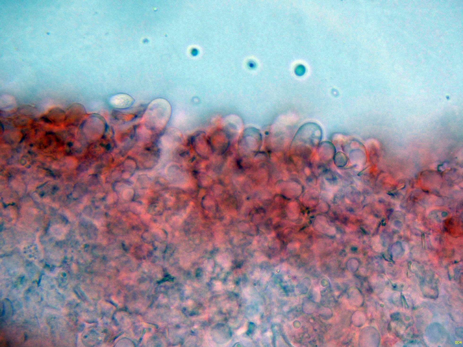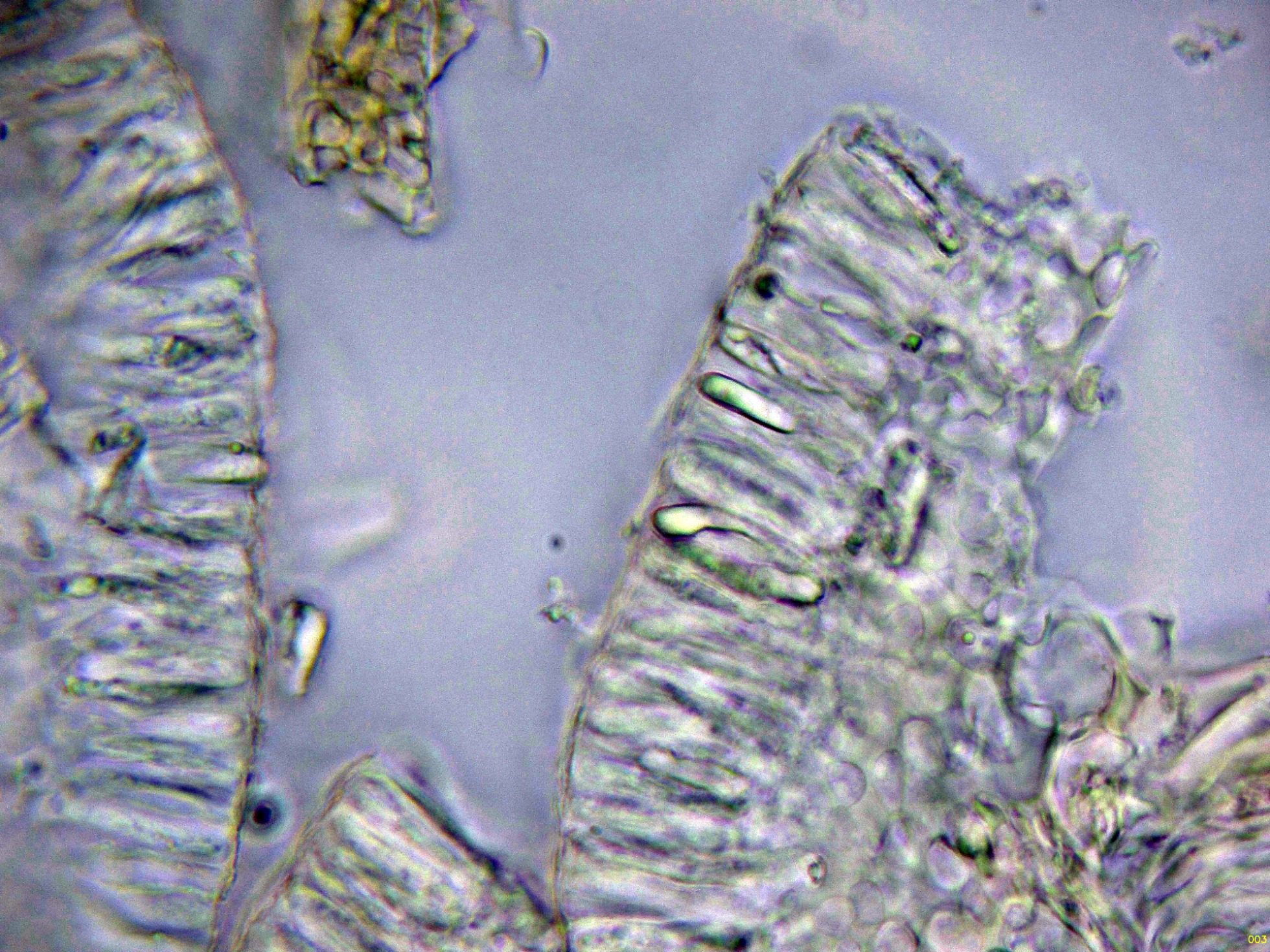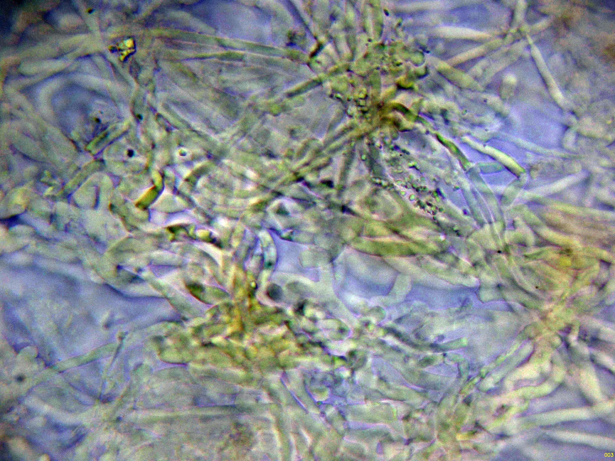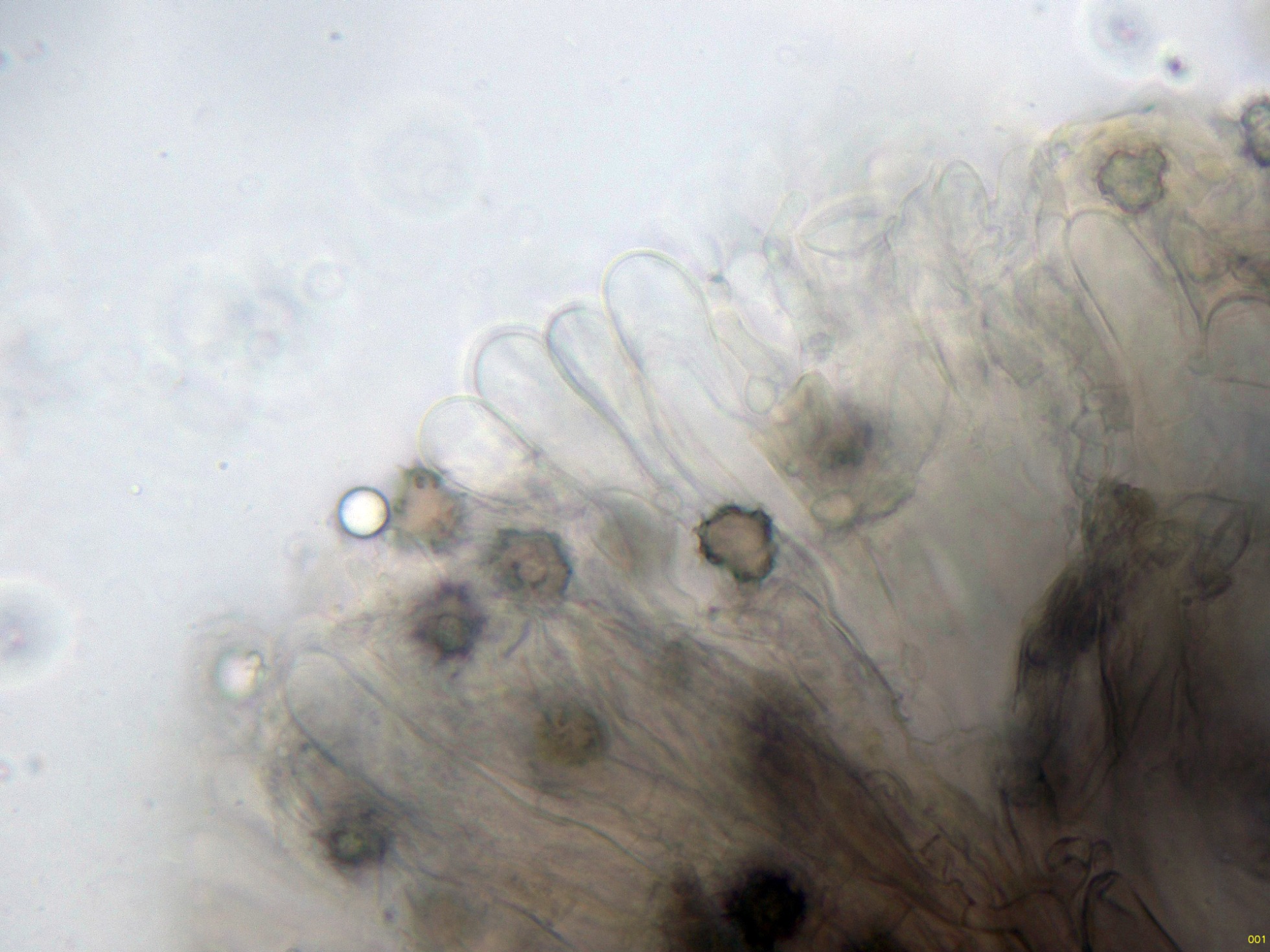 Las hifas del excípulo de textura irregular, más o menos rectangular en agua: