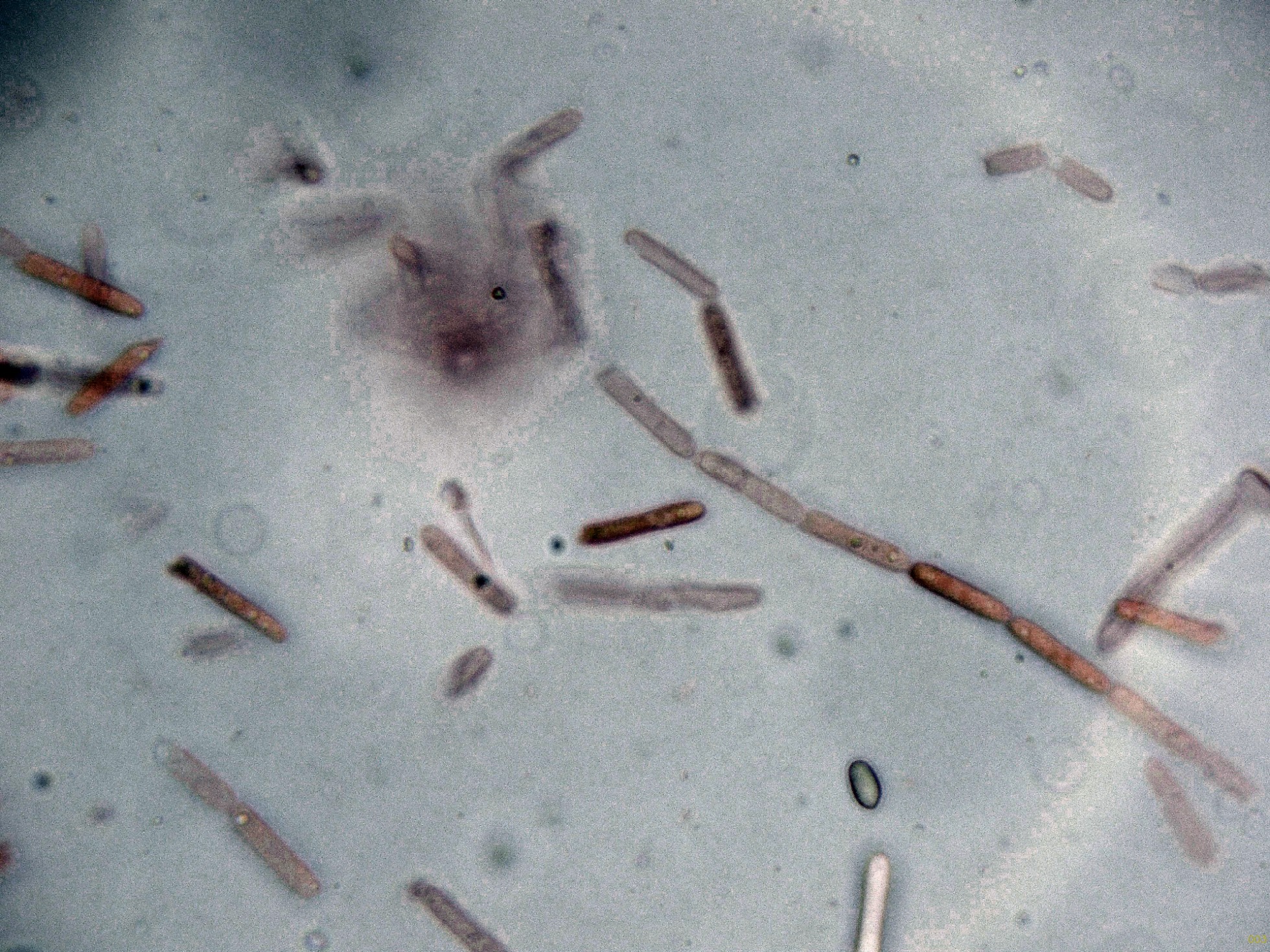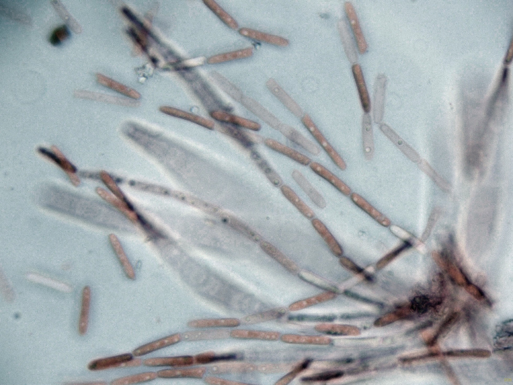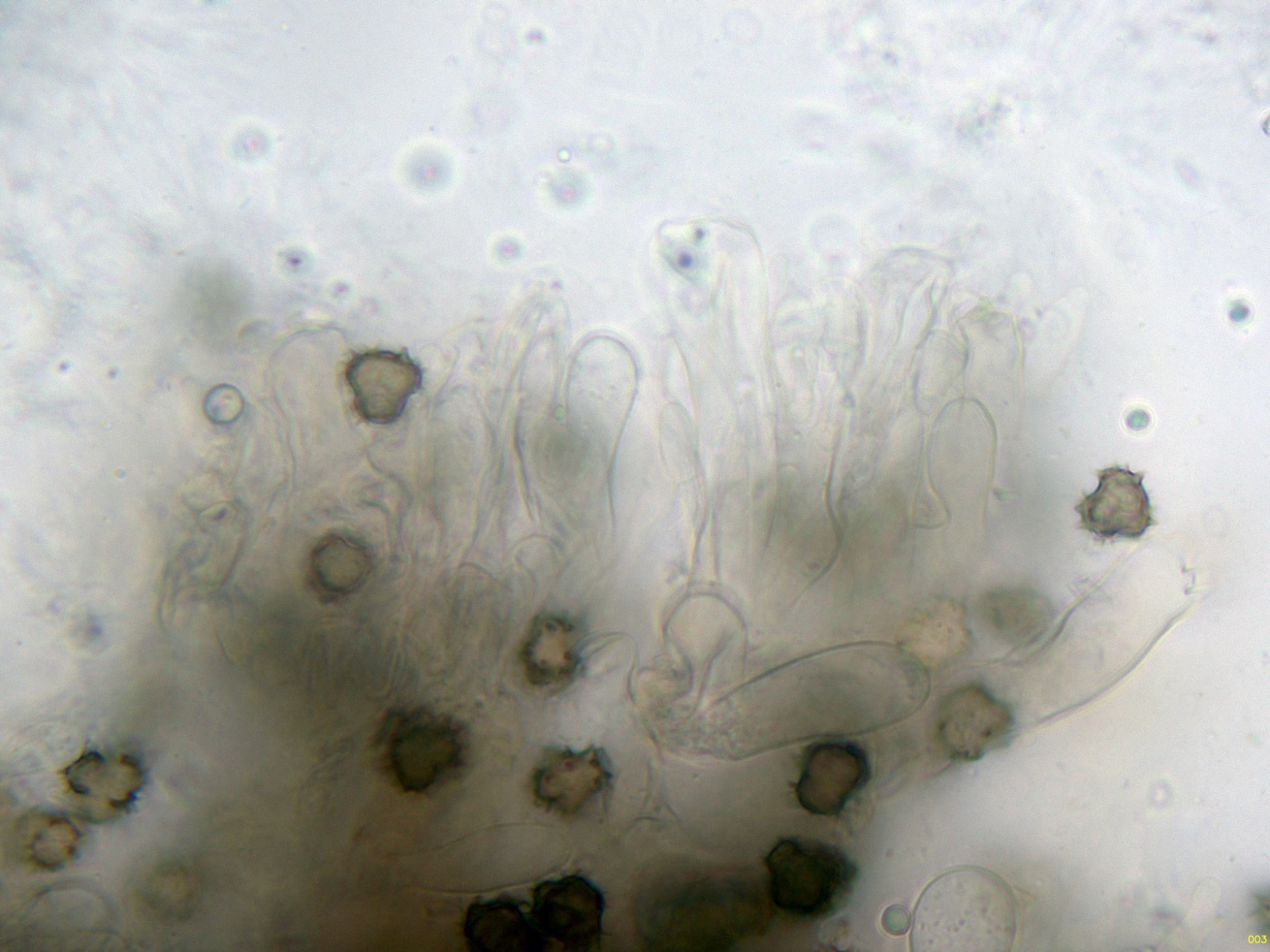 Seguimos con una diminuta que no tengo claro ni el género, sobre hojas del suelo en descomposición de Coccoloba uvifera, su aspecto como la microscopía obtenida sugieren una Volutella cf.: