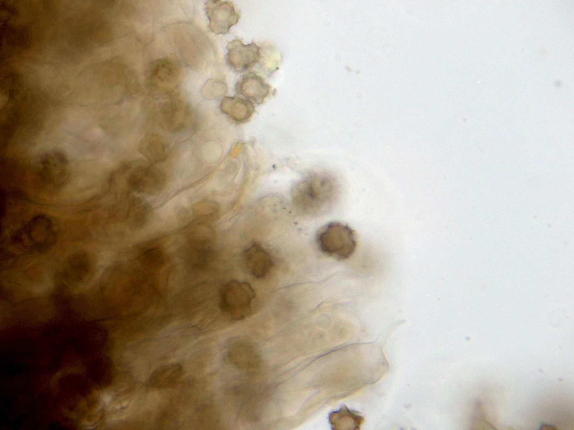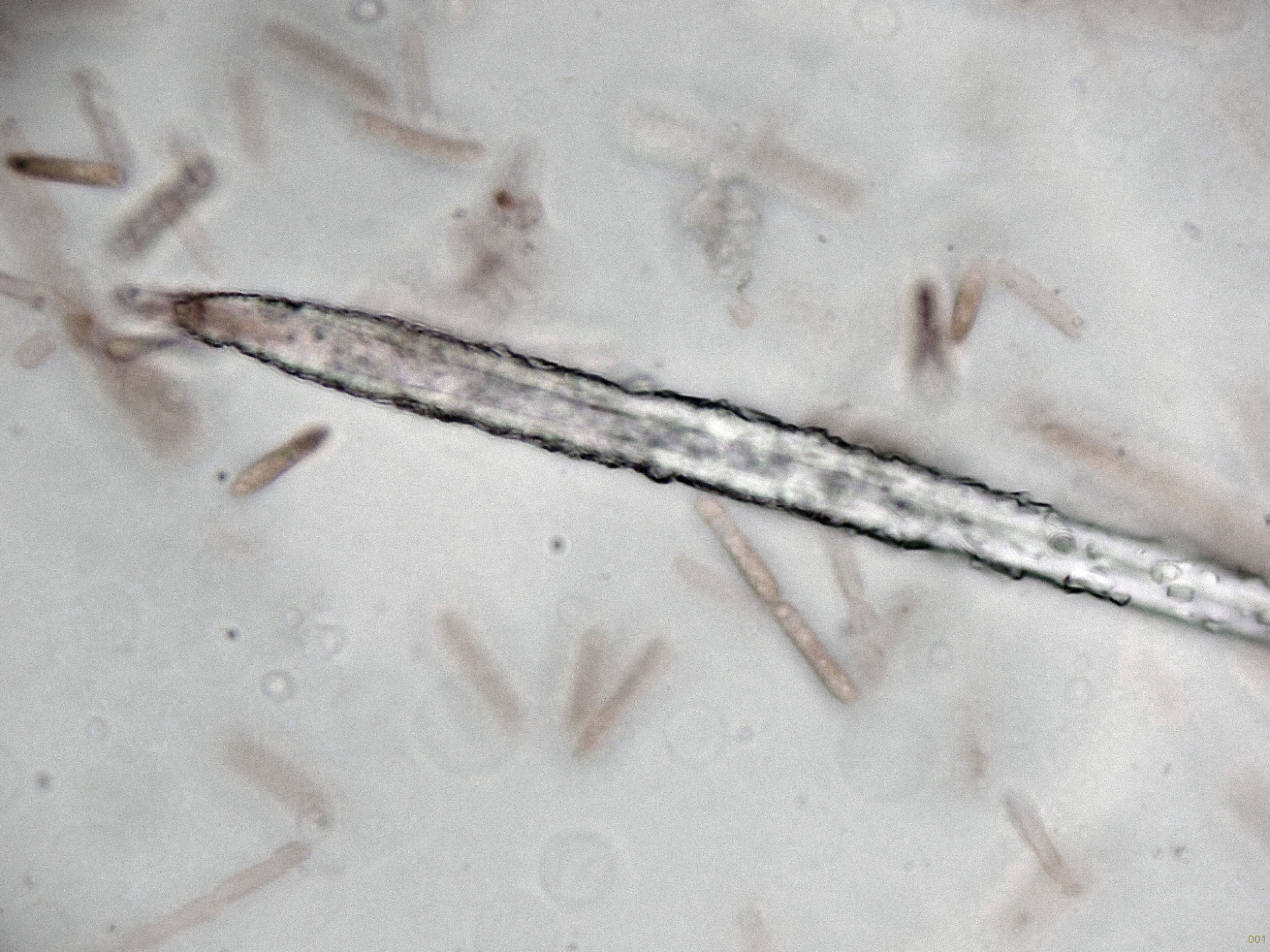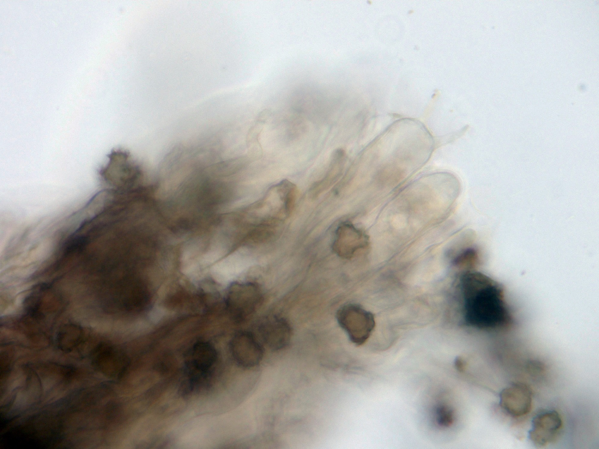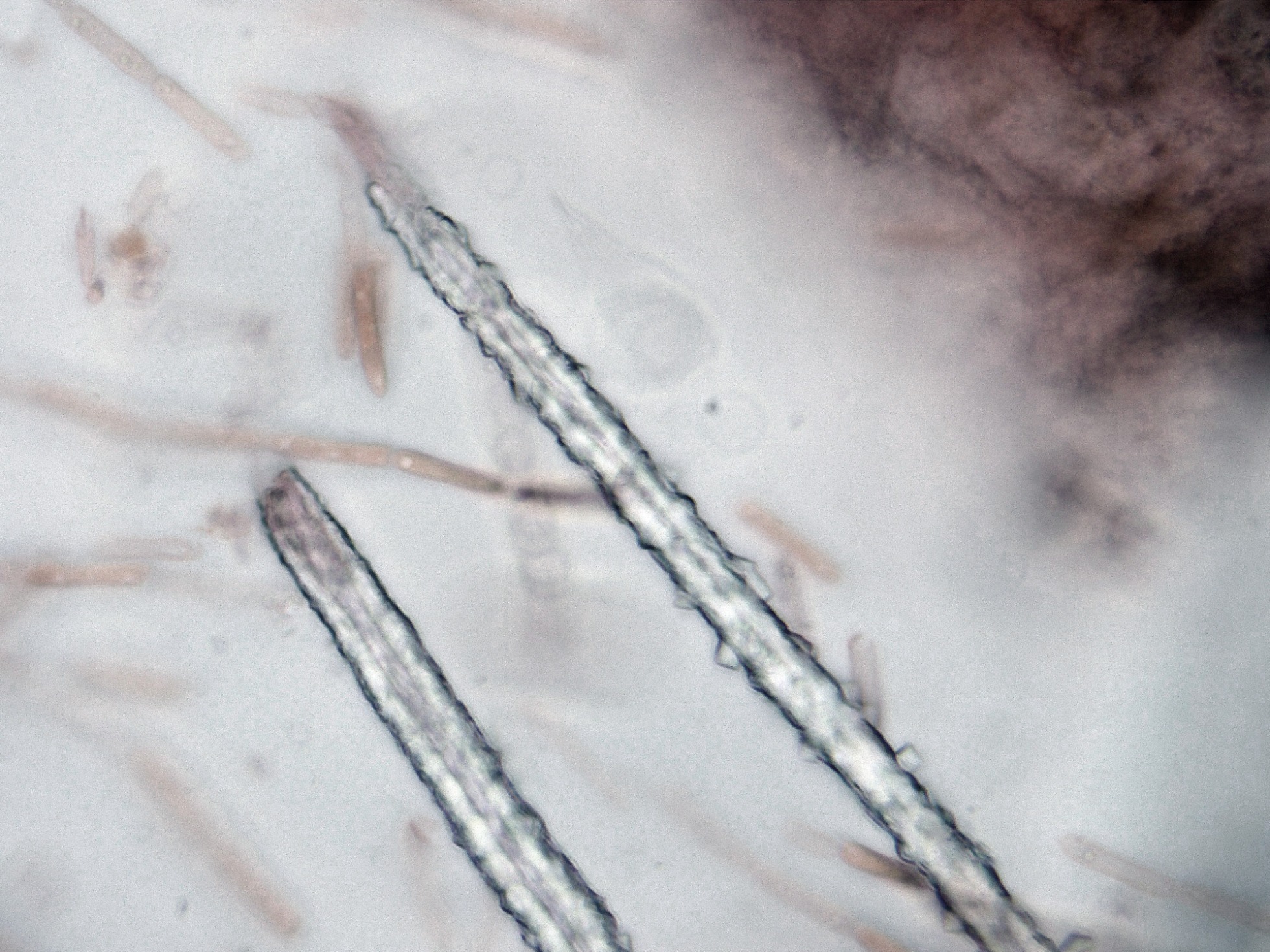 Seguimos con una diminuta que no tengo claro ni el género, sobre hojas del suelo en descomposición de Coccoloba uvifera, su aspecto como la microscopía obtenida sugieren una Volutella cf.:
