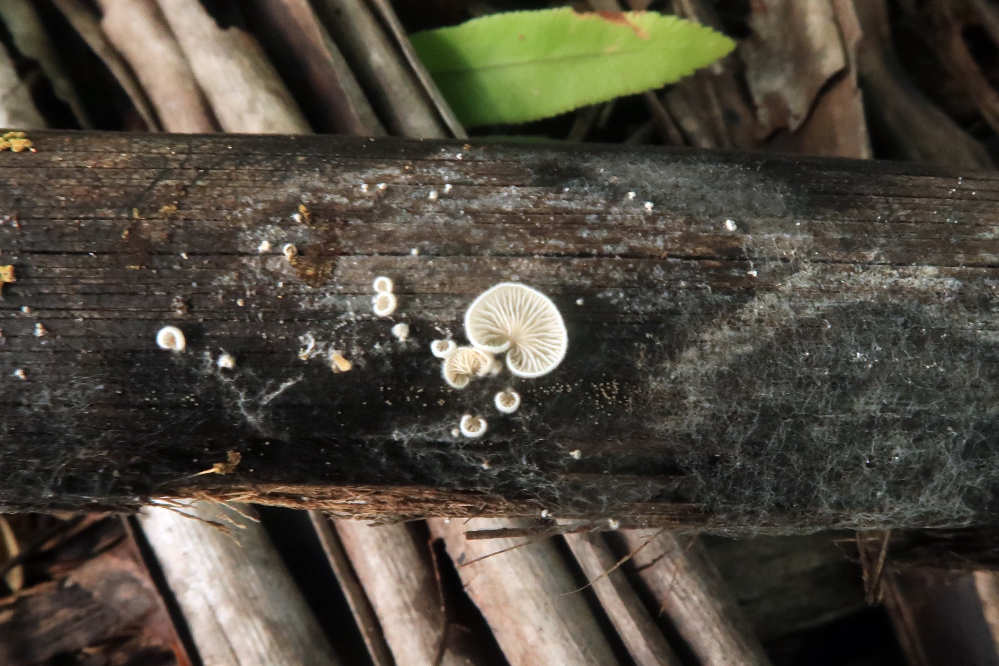 Continuamos con uno que me he encontrado en infinidad de ocasiones, creo que no soy yo quien lo encuentra sino que es él el me encuentra a mí, en todos los Continentes, ahora sobre una espata de palmera de coco del suelo en descomposición, tenemos el Clitopilus hobsonii: