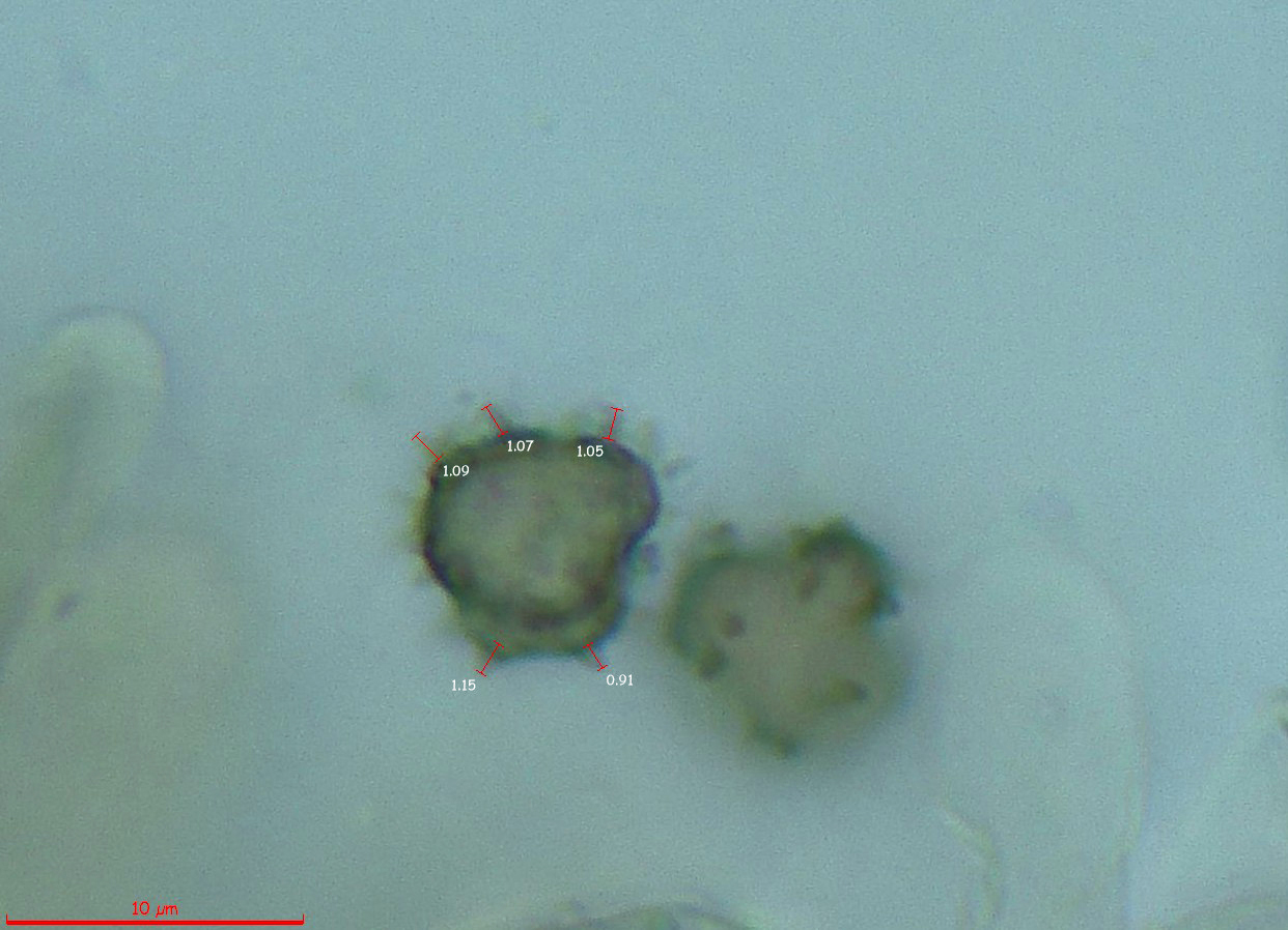 Y por último una imágen de una espora con las medidas de las espinas: