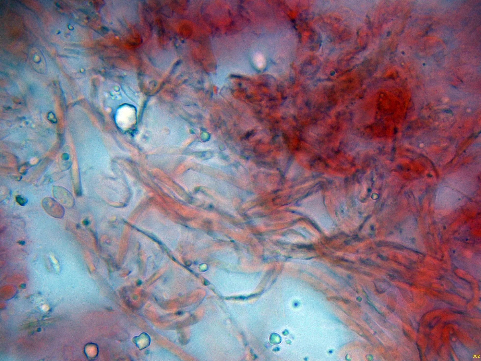 Las hifas de la suprapellis en solución de Rojo Congo diluído: