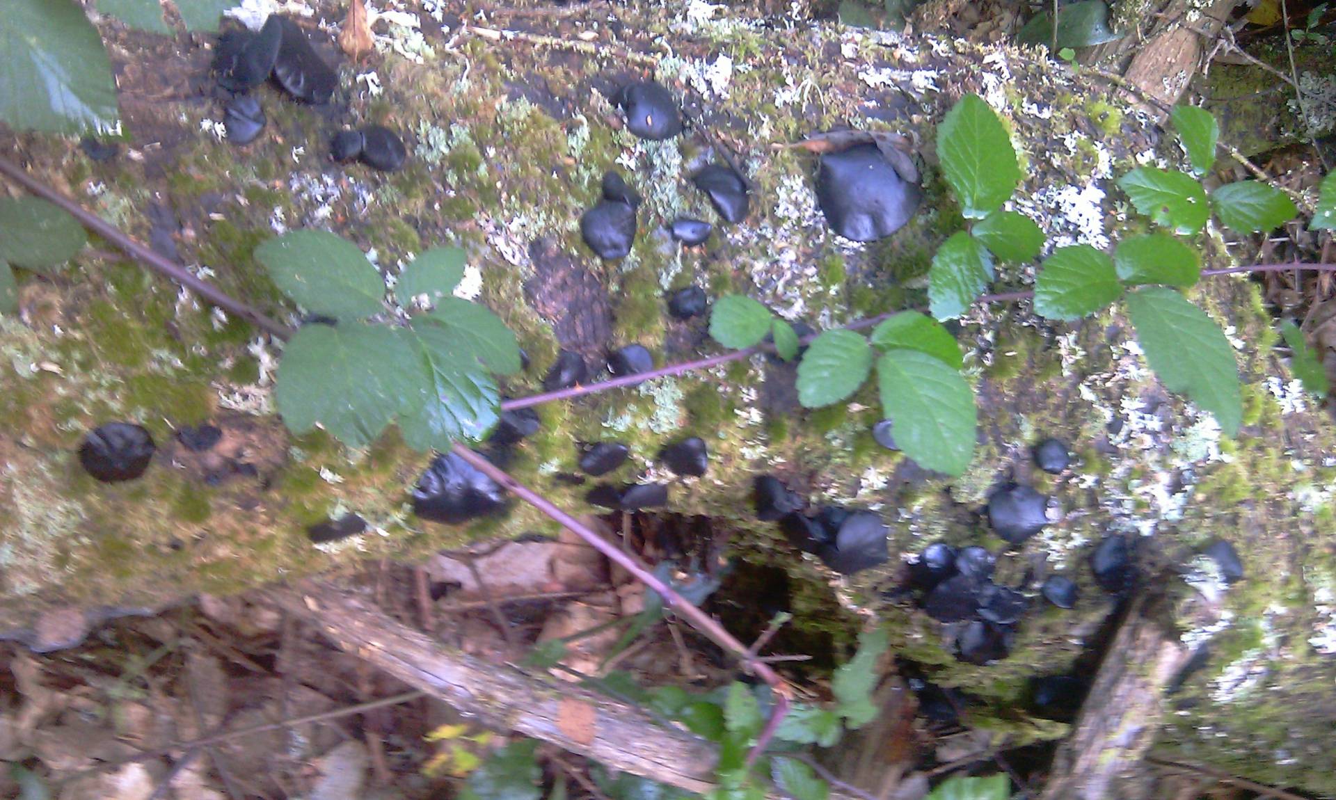 El ejemplar de mi foto lo encontré sobre un tronco de carballo (roble) en una carballeira muy frondosa en una ladera con un 30% de pendiente y orientada al levante. Su color era casi negro azabache (como se refleja más en la foto de más campo visual que en la de detalle por culpa de la luz del flash del teléfono) y el tamaño del himenio oscilaba entre 1 y 3,5 cm aproximadamente. Es la única vez que me la he encontrado.