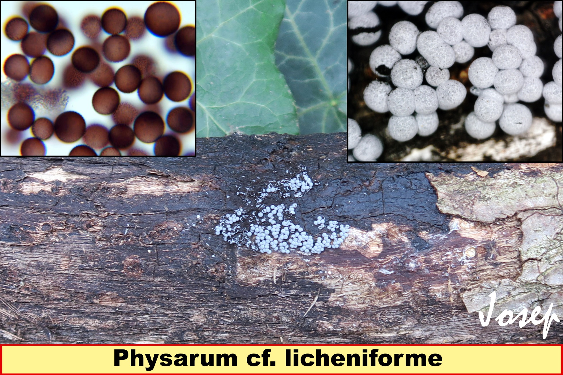 Hola Javier, muy bonitas imágenes, por el aspecto parece algún Physarum, el Physarum cinereum y el Physarum album serían buenas opciones, aunque no veo en tu microscopía los granulos de calcio que deberían estar muy presentes, tampoco me terminan de encajar las medidas esporales que en tu propuesta estarían por encima de las dos mencionadas. De confirmarse la ausencia de granulos o en todo caso ser muy escasos, podría tratarse de una Badhamia, la Badhamia panicea y la Badhamia affinis serían asimismo buenas opciones, creo que deberíamos centrarnos en estos dos géneros ya que la cosa seguro que va por ahí. Te dejo unas imágenes mías de Mixos parecidas a lo que nos muestras.