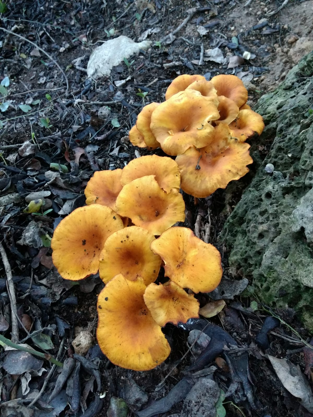 Te dejo una imagen mía de Omphalotus olearius , una de Clitocybe gibba y otra de Hygrophoropsis aurantiaca.