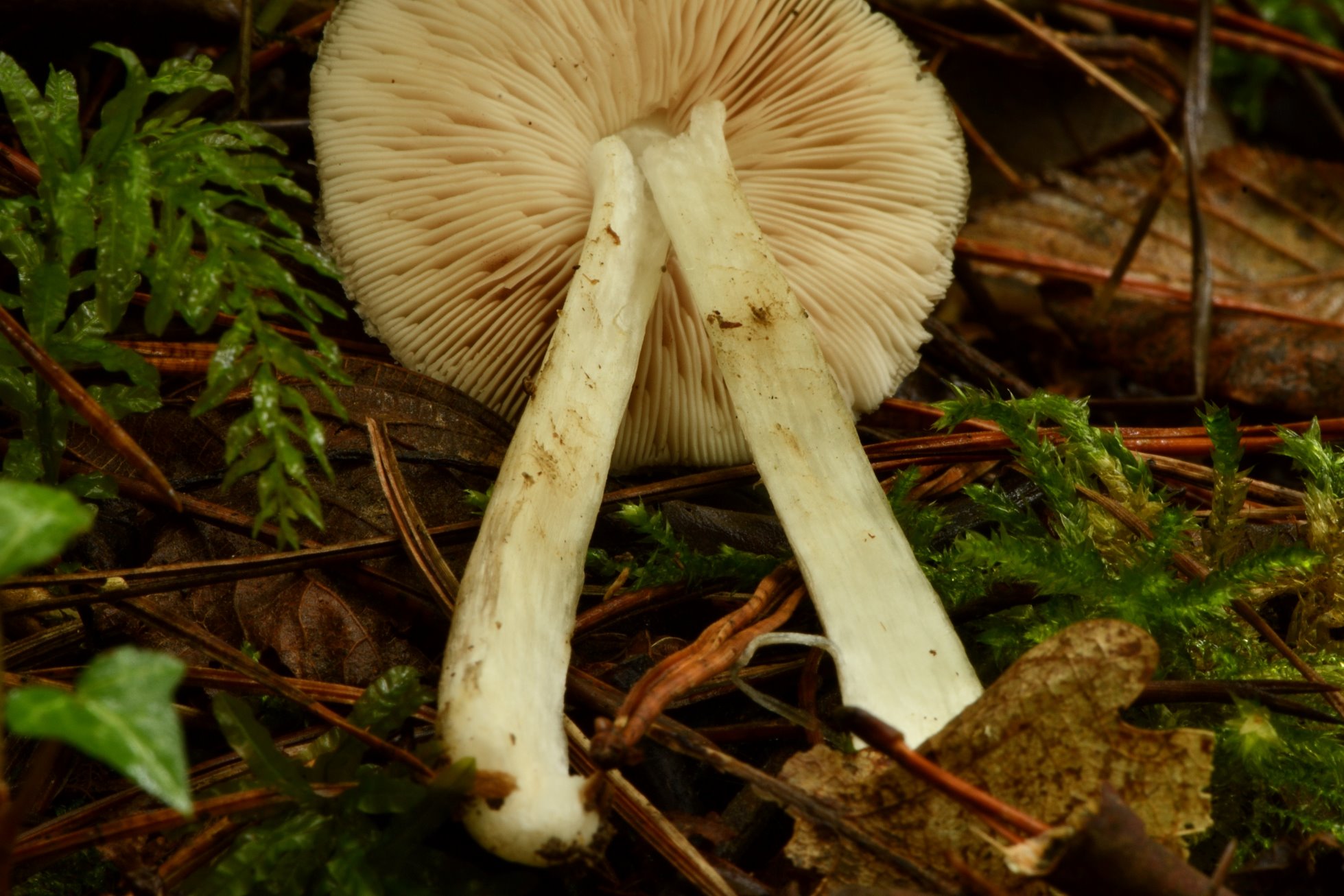 Pie: De 6 cm de longitud. Esbelto y delgado. En la parte de arriba del color de las laminas y en la parte de abajo junto a la base del color del sombrero predominante. Con fibras longitudinales en la parte de abajo. Lleno.