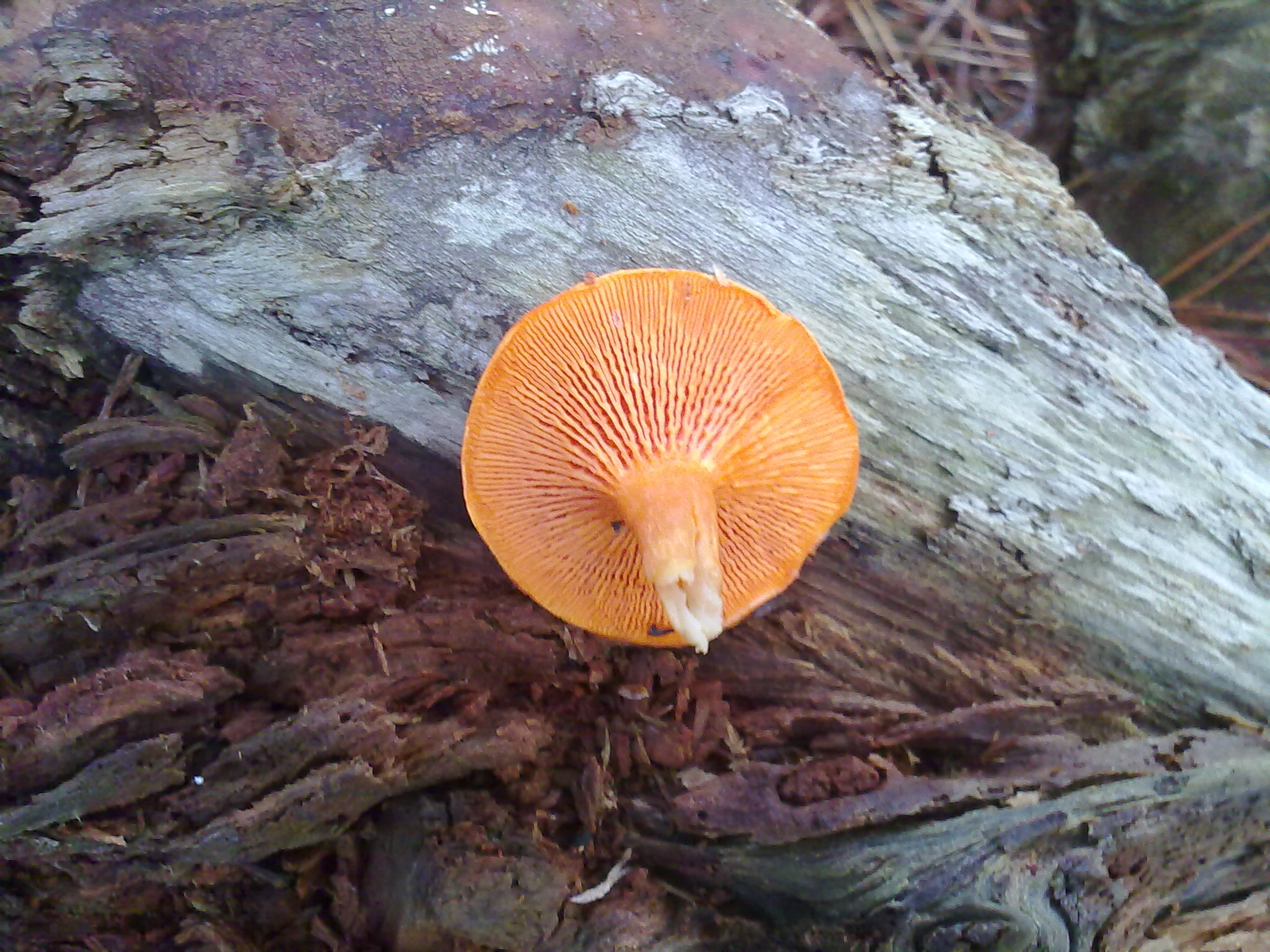 Hola Duende,las cantharellus no tienen laminas.Podría tratarse de un Lactarius Canfhoratus?aunque no veo latex.No me cuadra con el Rebozuelo Anaranjado al que os referís.