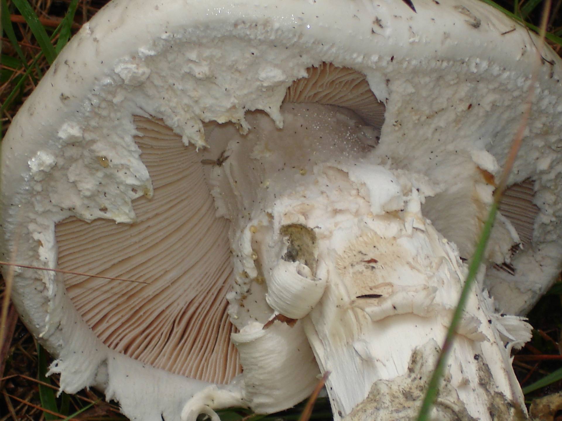 Es una seta que alcanza proporciones inmensas, de un blanco inmaculado y bonita de verdad.