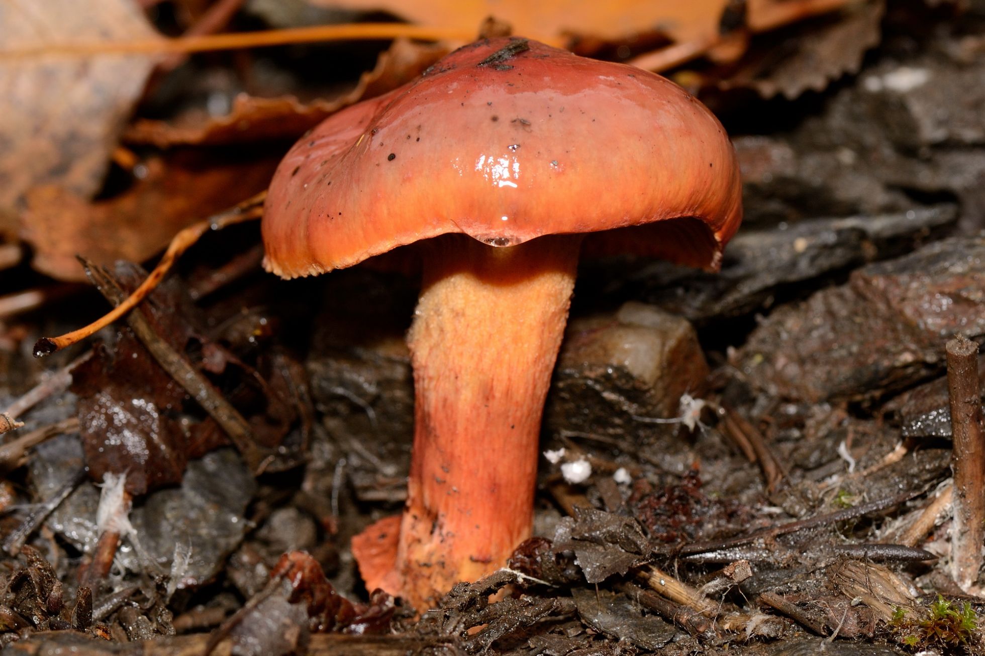 Chroogomphus fulmineus (R. Heim) Courtec. 1988. De ayer en un baranco estreco con las laderas de pinos y álamos junto al arroyo, sobre los 1300-1400 Mts. Habia bastantes, la epecie dominante junto con os grandes Tricholomas. Par saber mas os dejo este enlace: www.granadanatural.com/ficha_hongos.php?cod=42 .