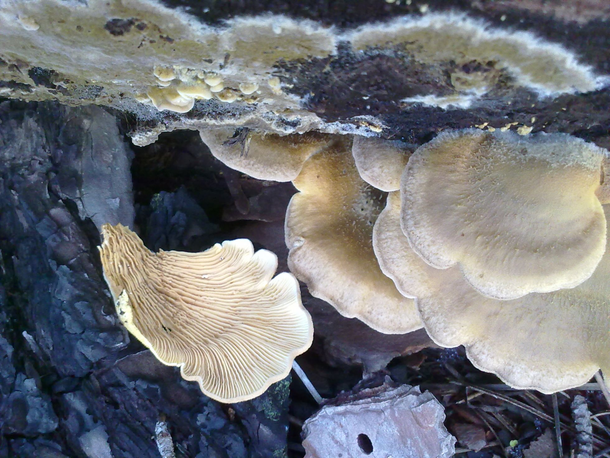 Tapinella panuoides, sobre un gran tronco de pino asesinado
