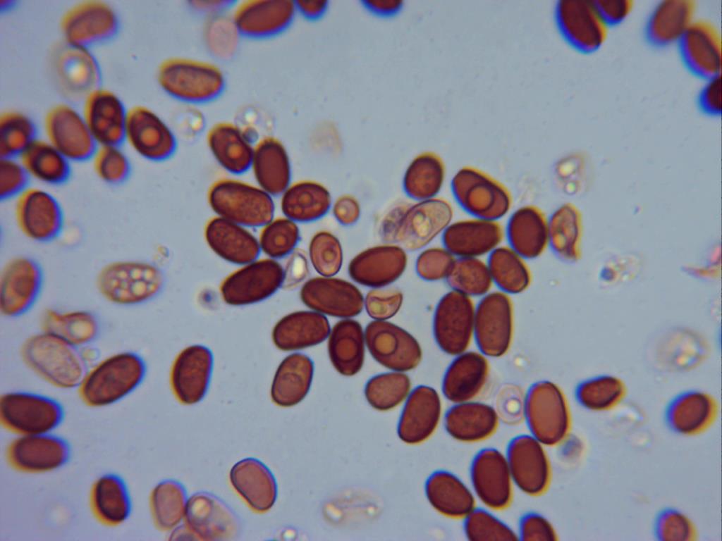Las esporas, pequeñas , en mis mediciones 2,6;4,1 X 1,8;2,3.