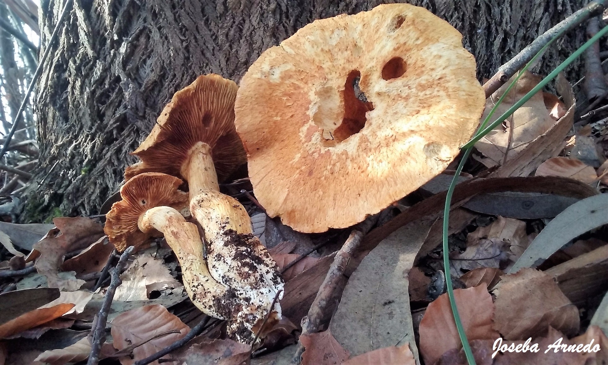 A los pies de un eucalipto crecia este gigantesco Gymnopilus junonius, la seta de la risa. El grande no andaria lejos de los 20 centimetros