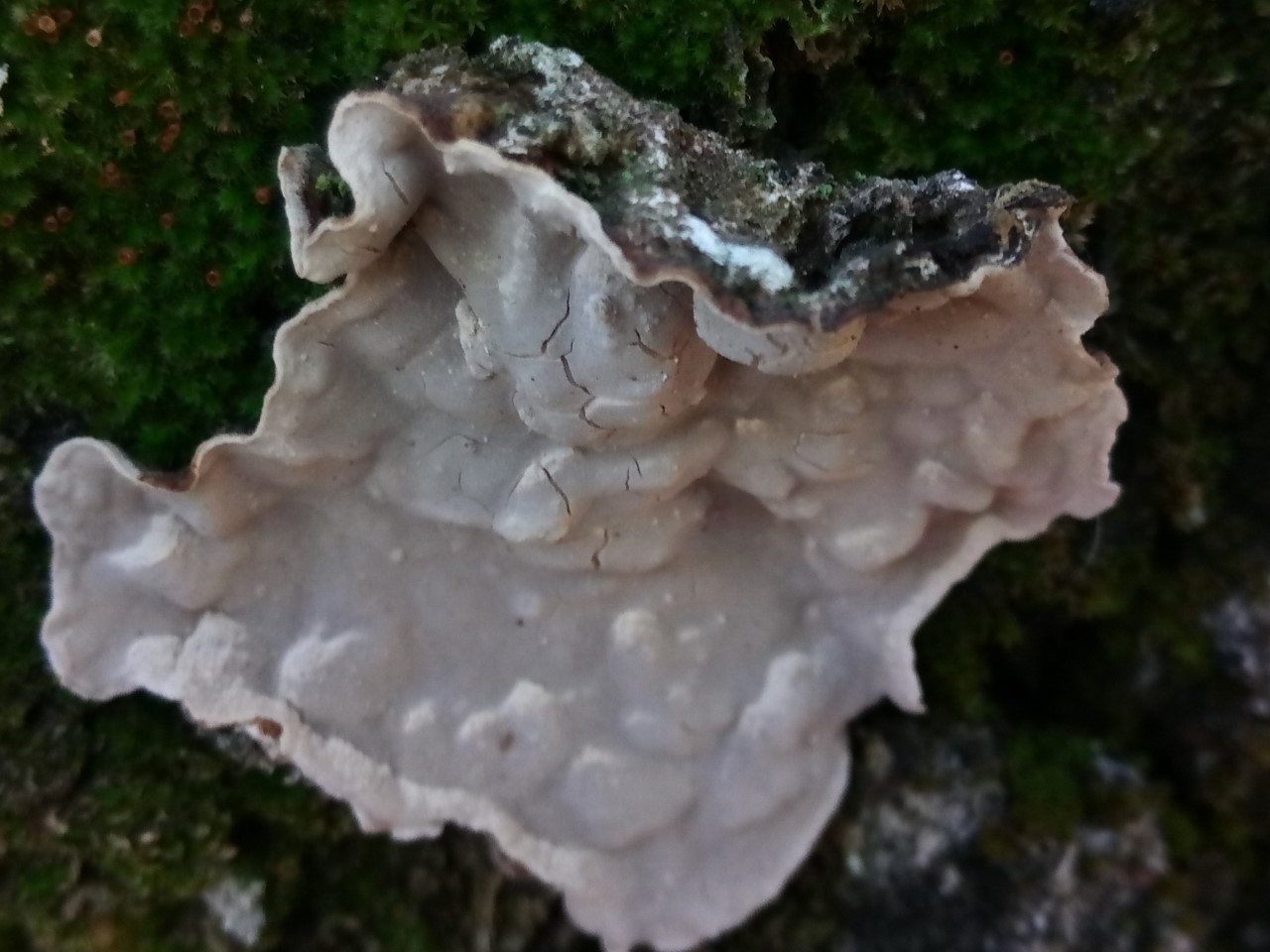 Carpóforo discoideo a resupinado e incluso efuso-reflejo, de 2-4 cm de ancho por