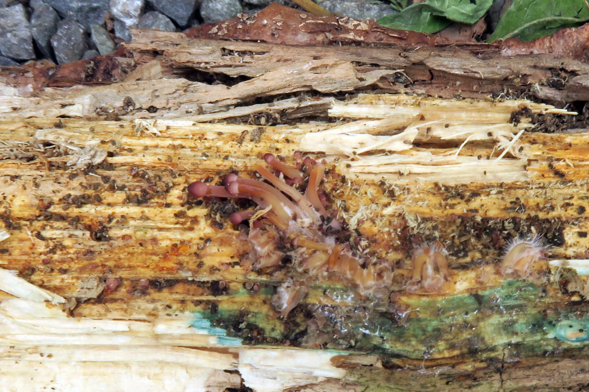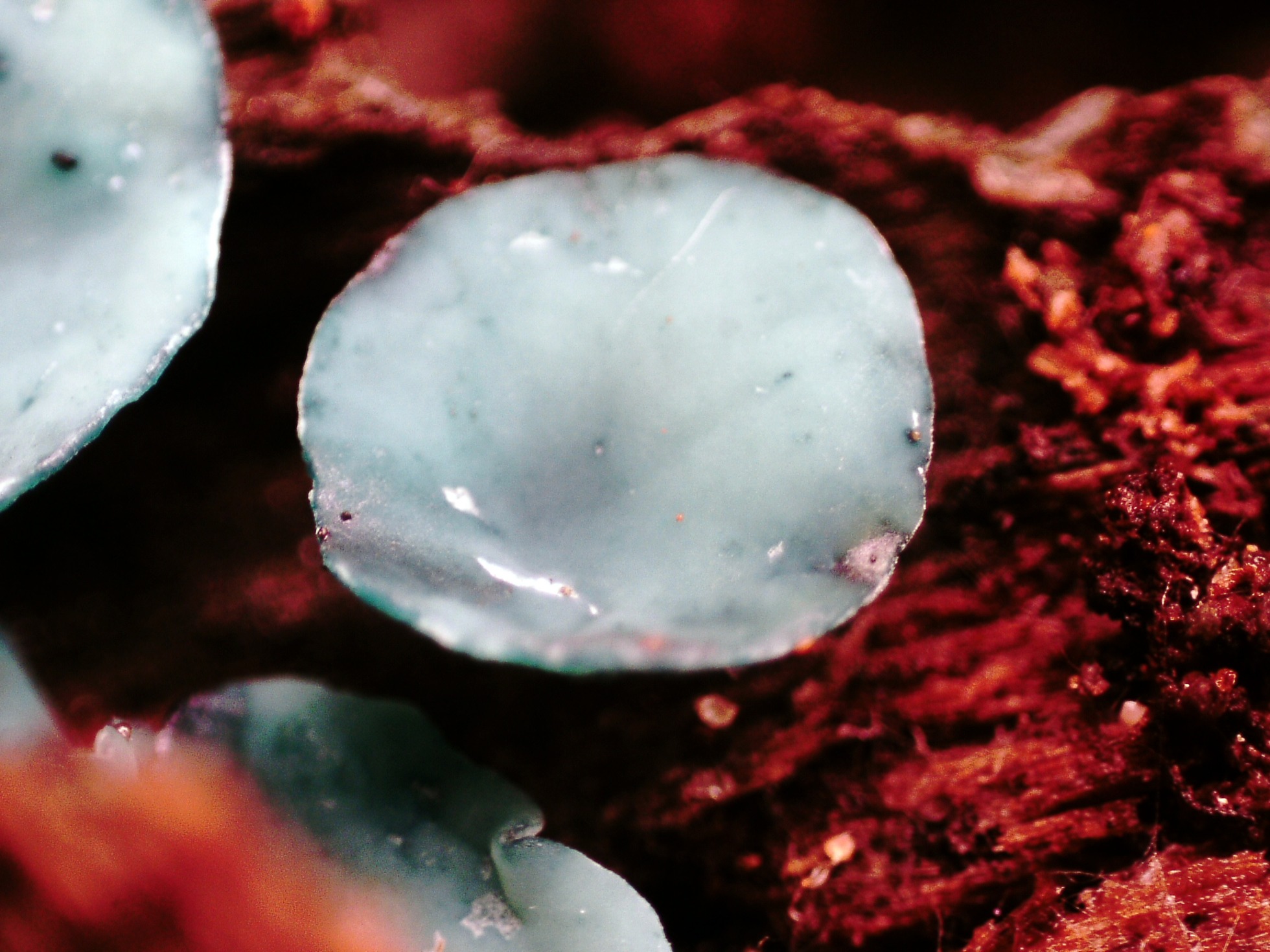Fotogénica como siempre, la más que probable Chlorociboria aeruginascens: