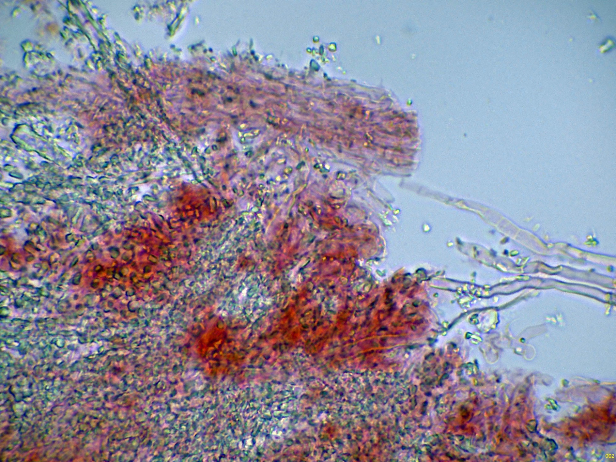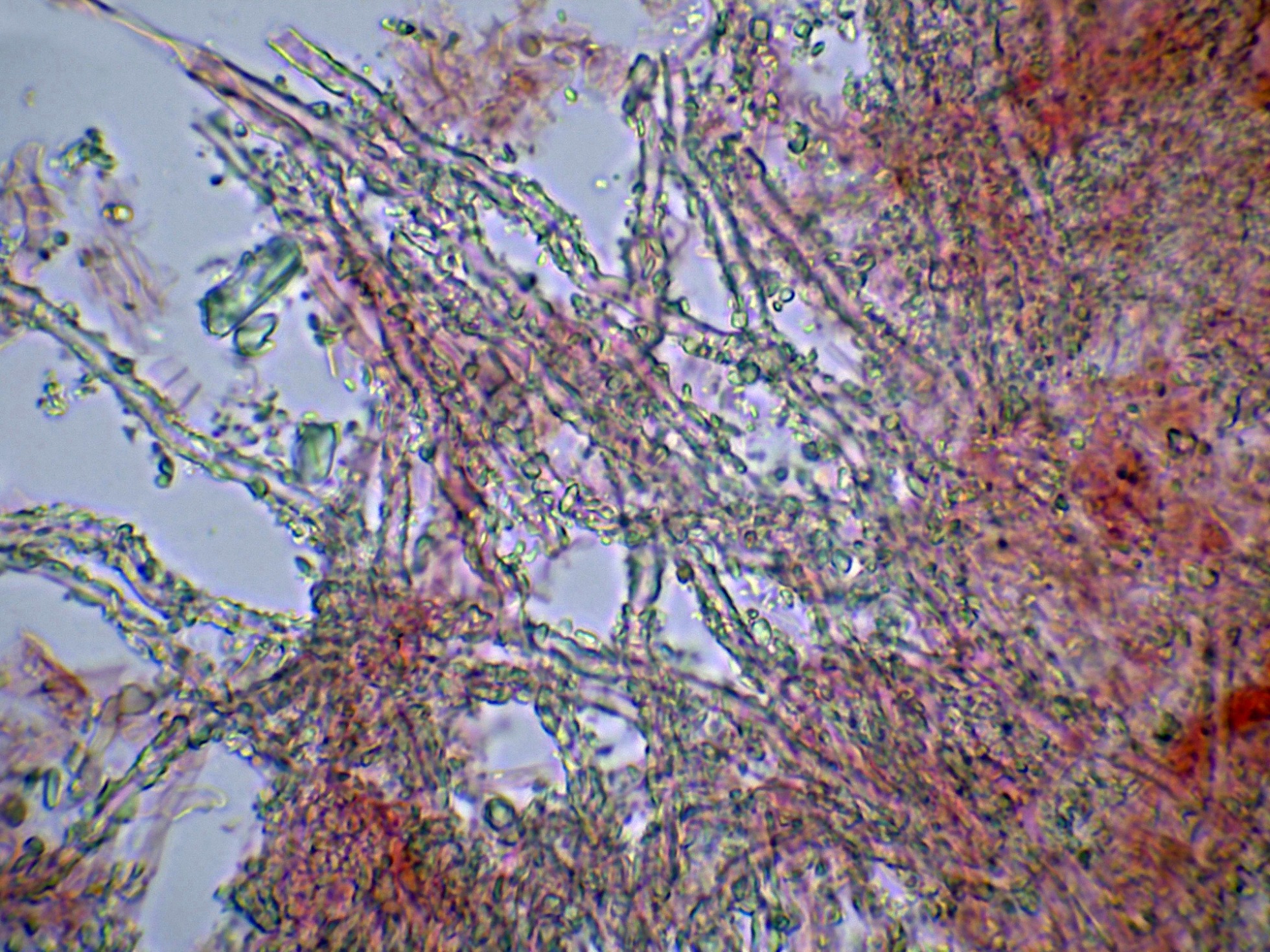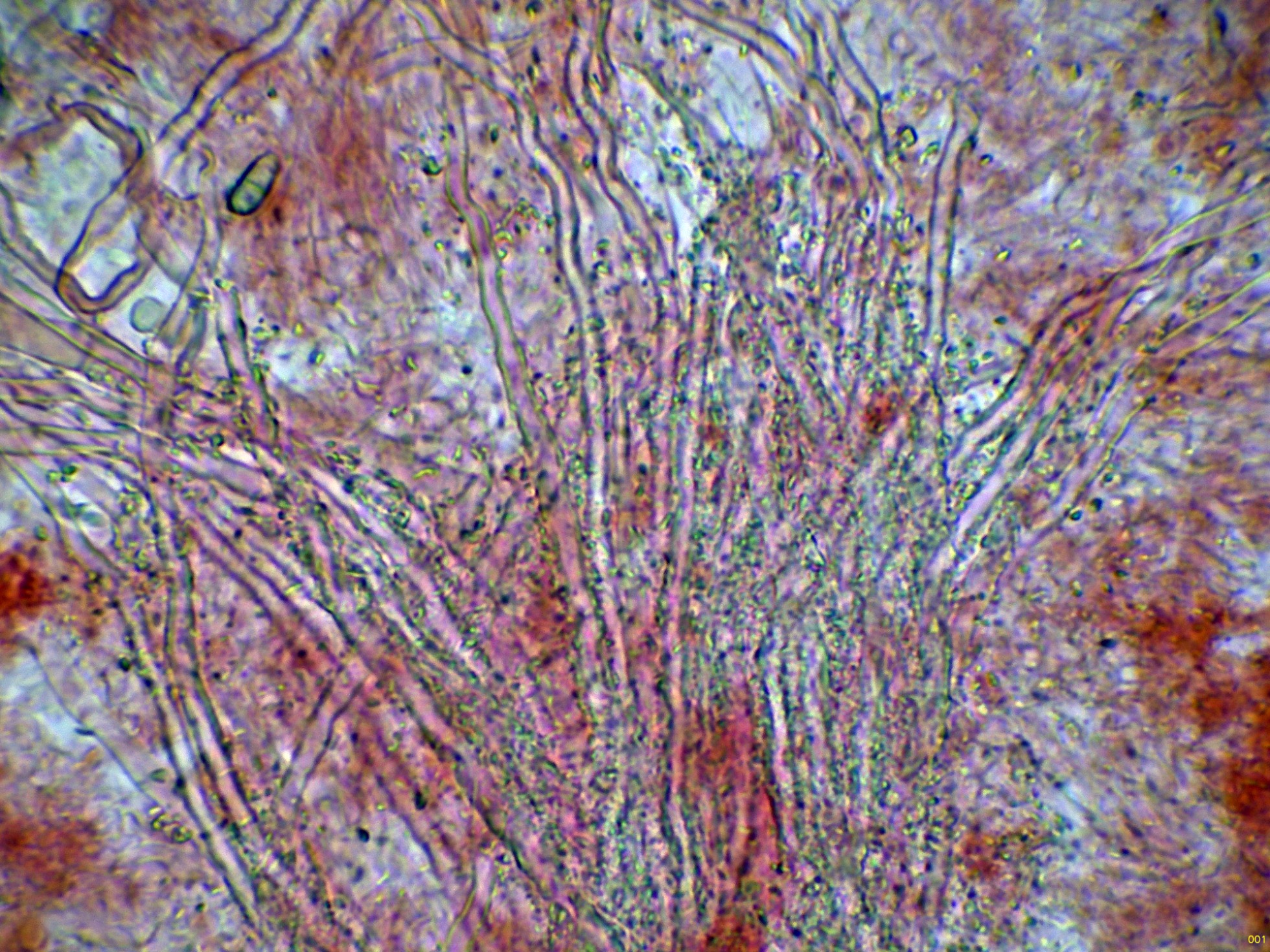 Las hifas de la suprapellis en solución de Rojo Congo: