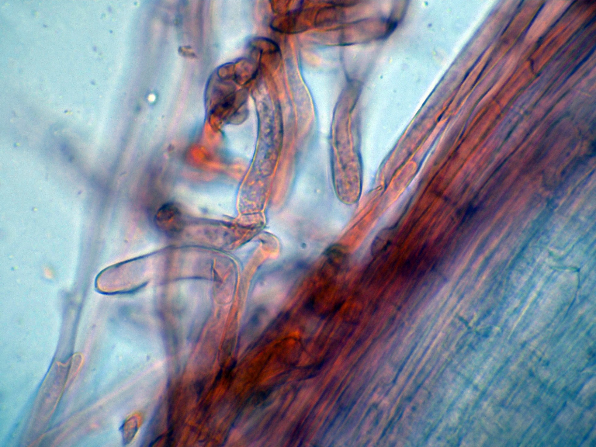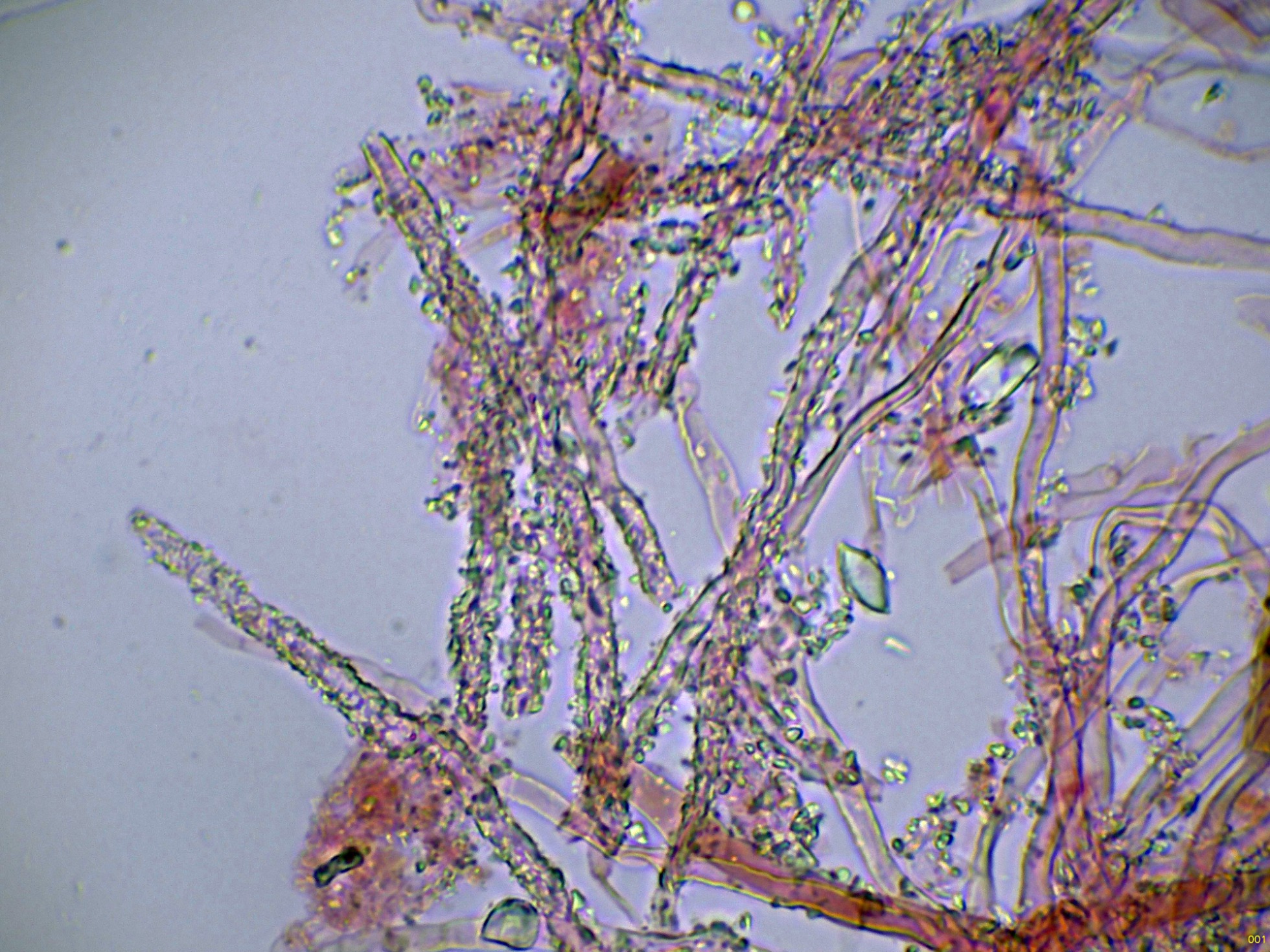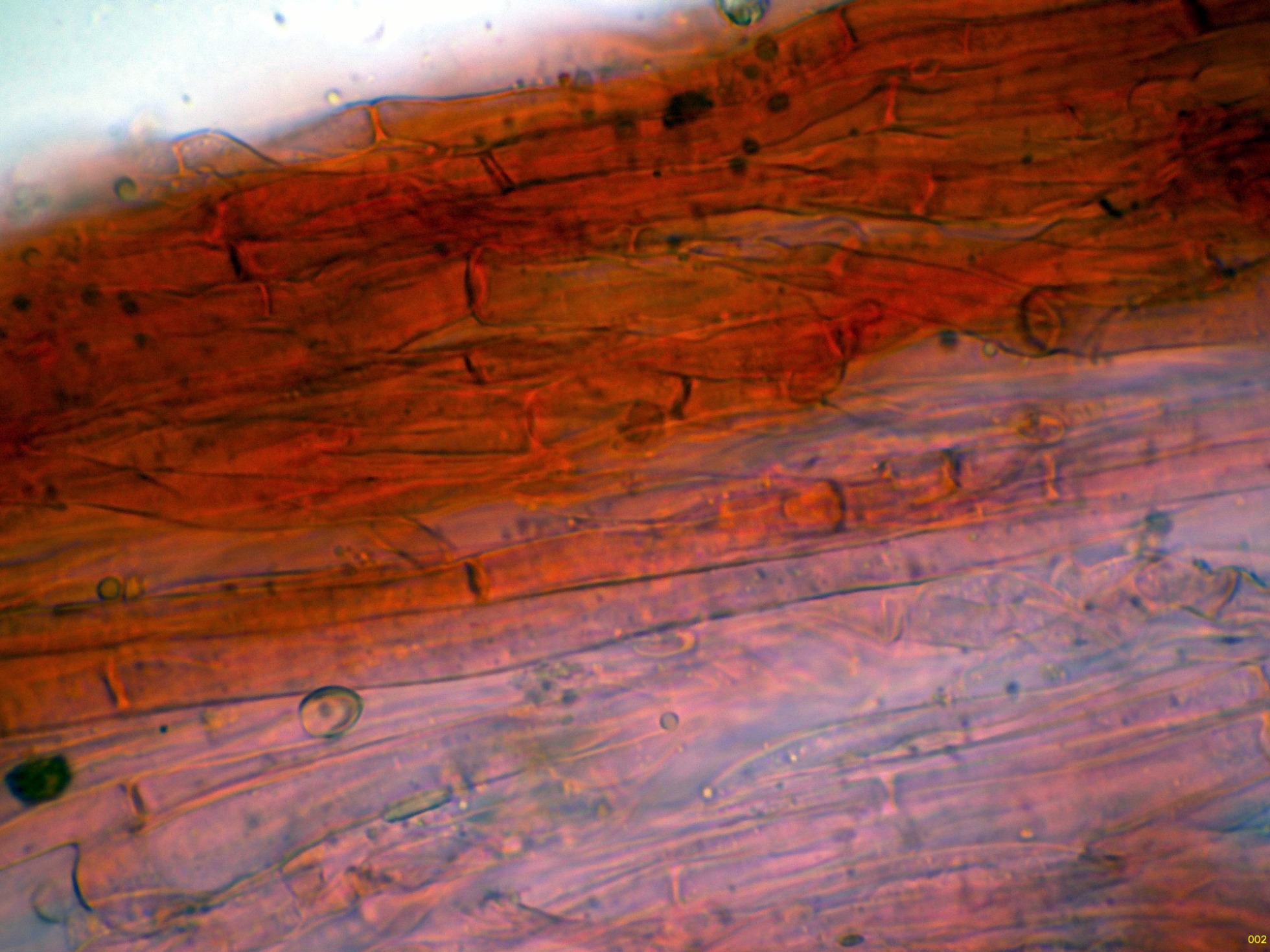 Las hifas de la suprapellis en solución de Rojo Congo: