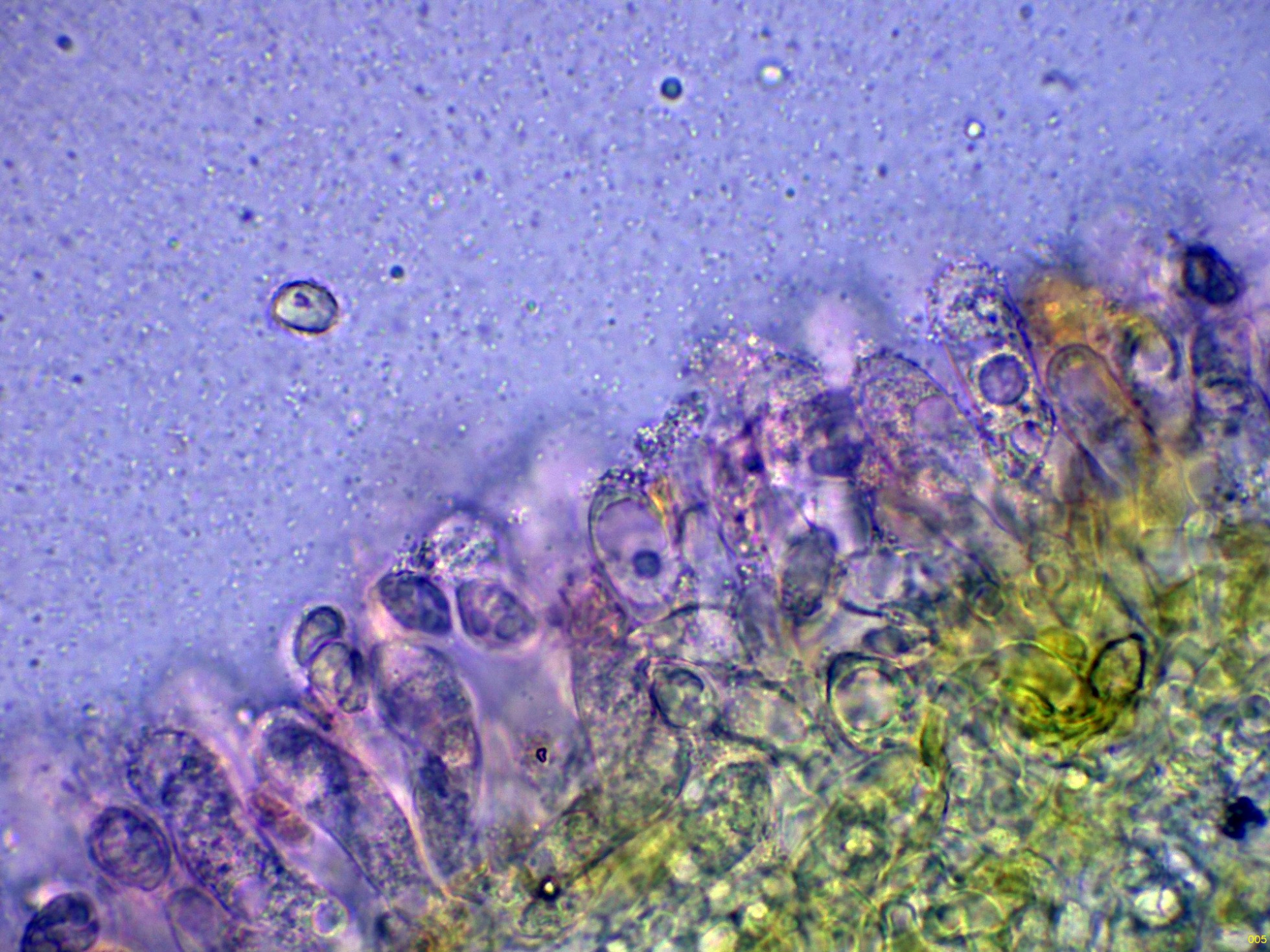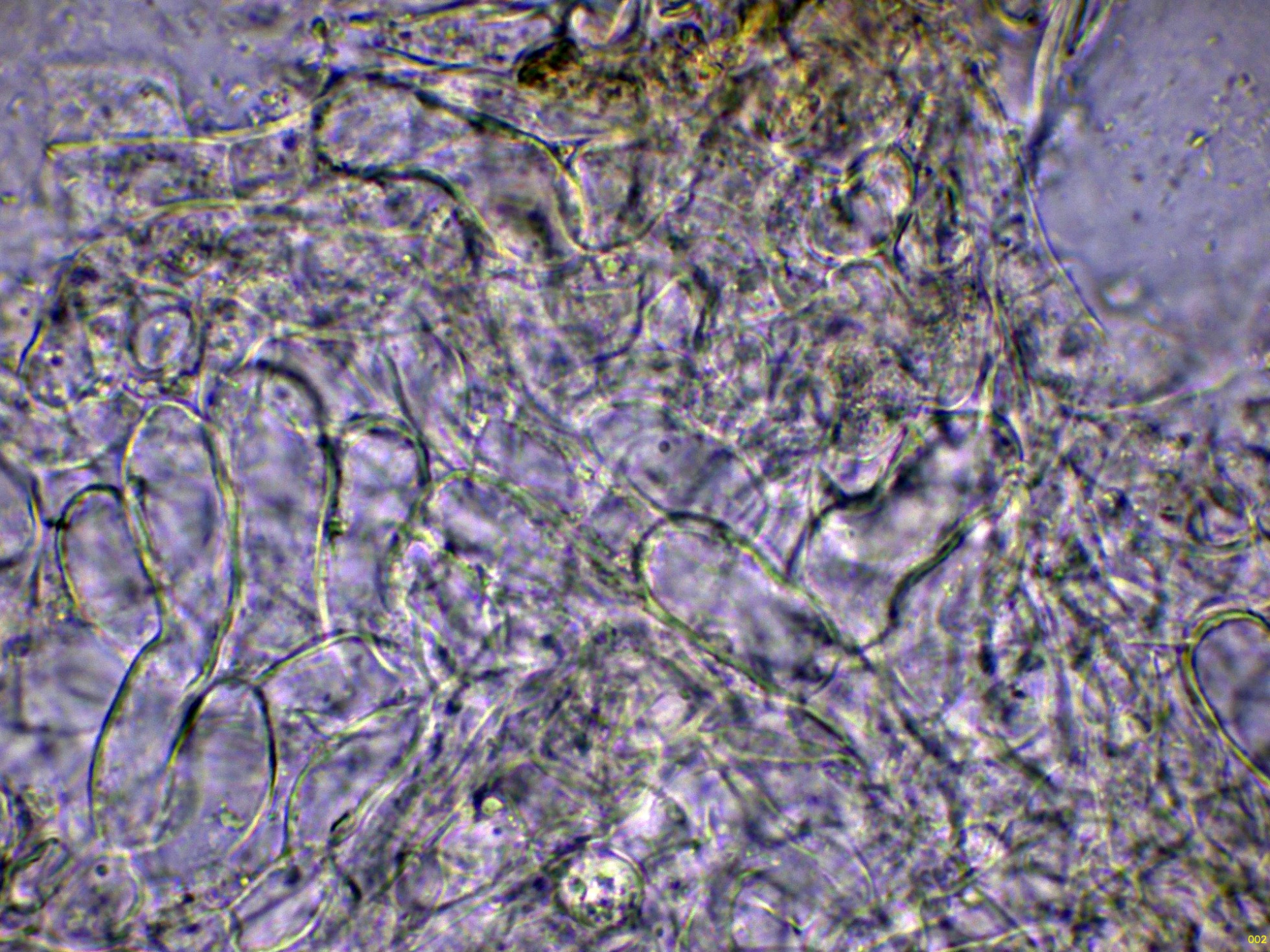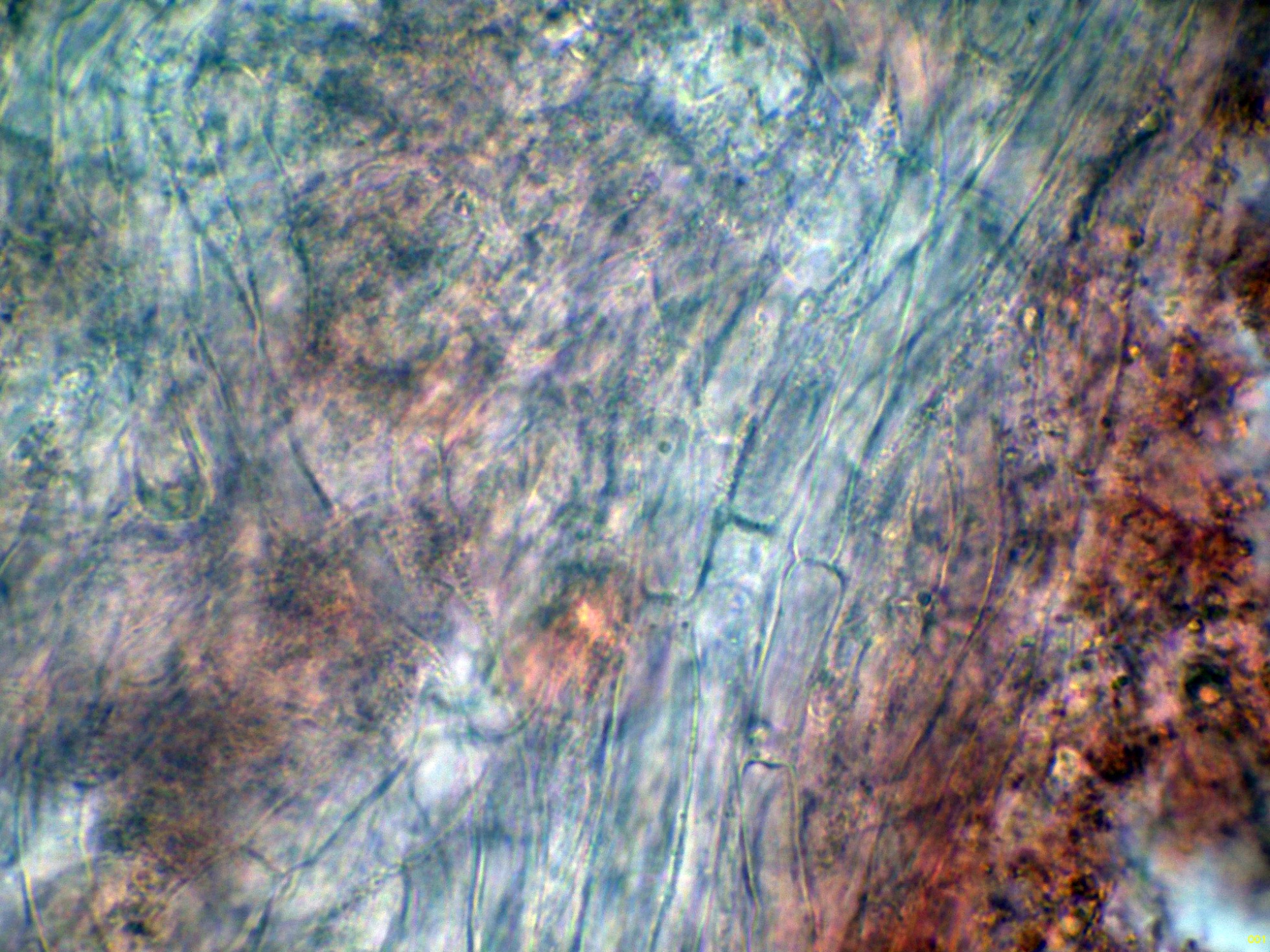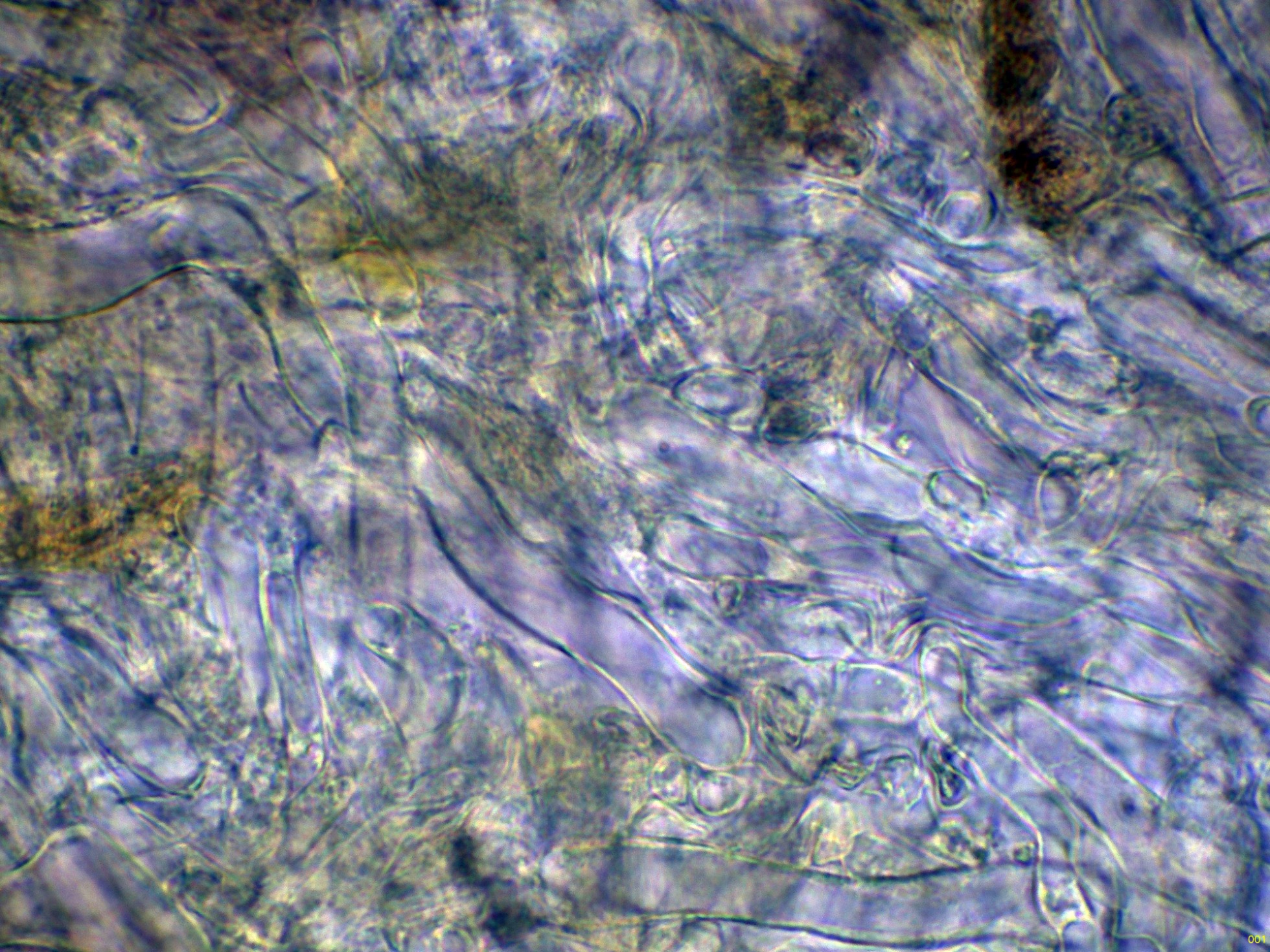 La trama laminar en amoníaco, el Tricholoma lascivum es uno de los pocos Tricholomas que pueden presentar algunas fíbulas: