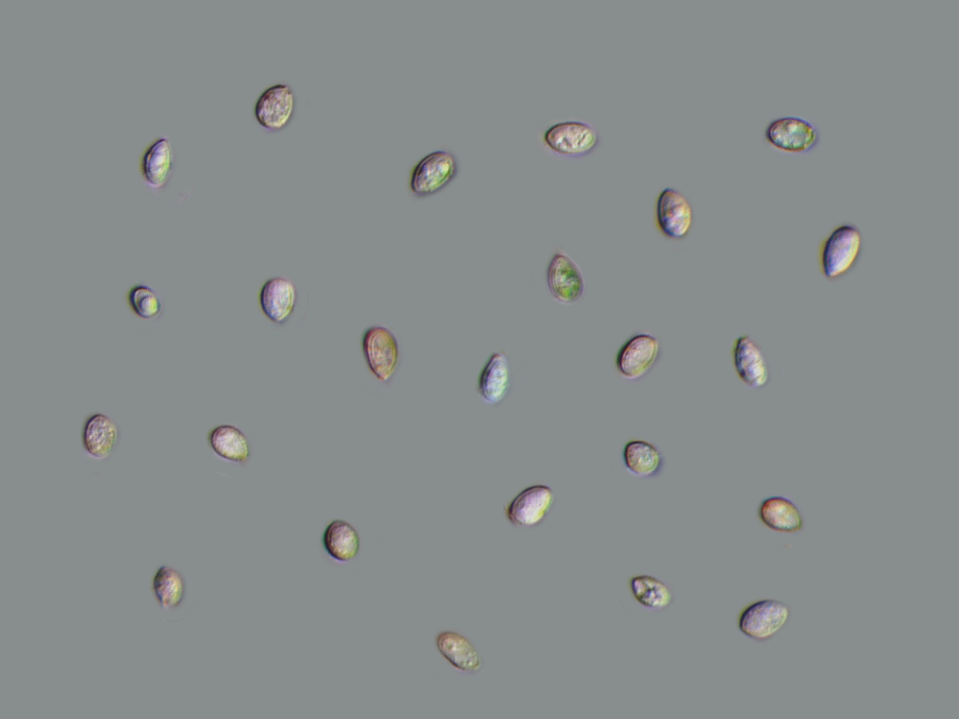 Las esporas en Reactivo de Melzer, sin ninguna reacción aparente: