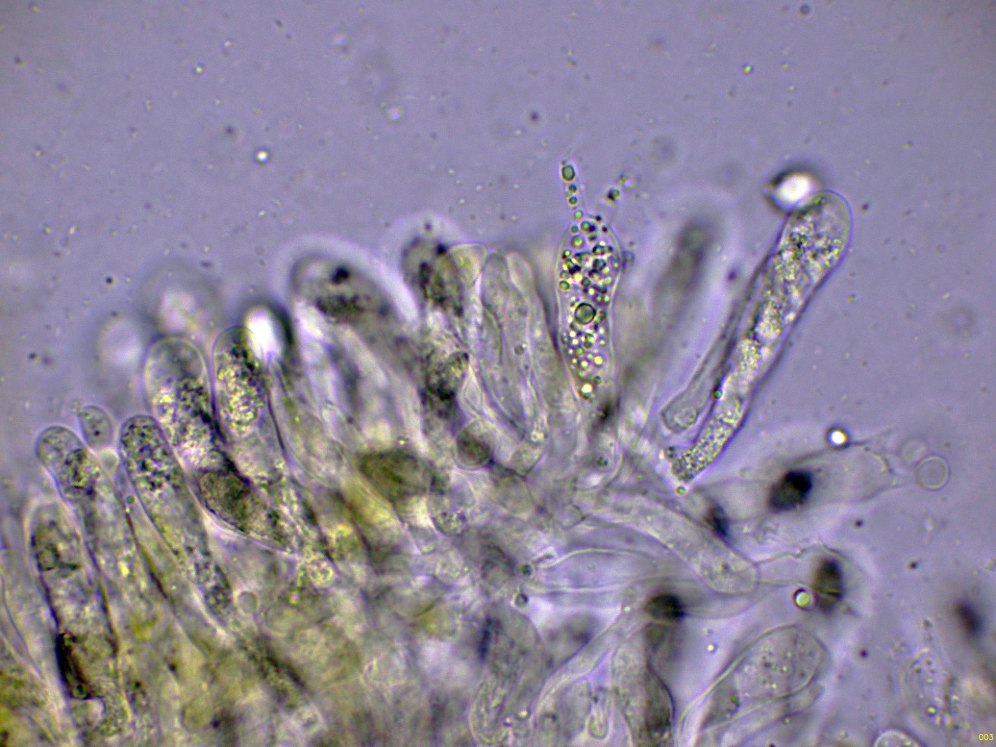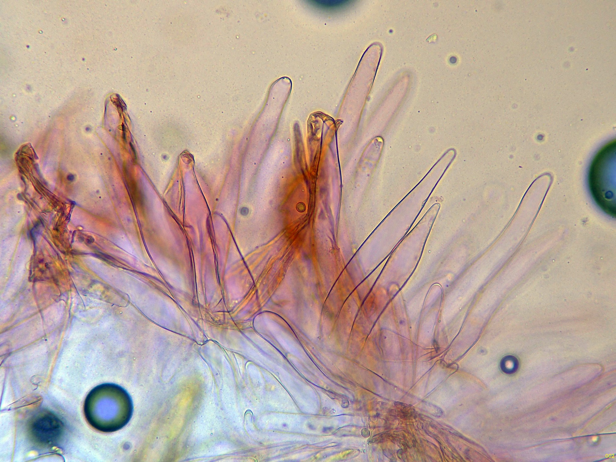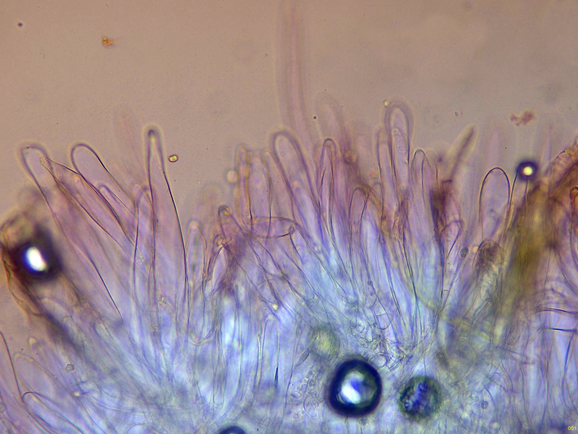 Una parte de estos queilocistidios a 1000 aumentos: