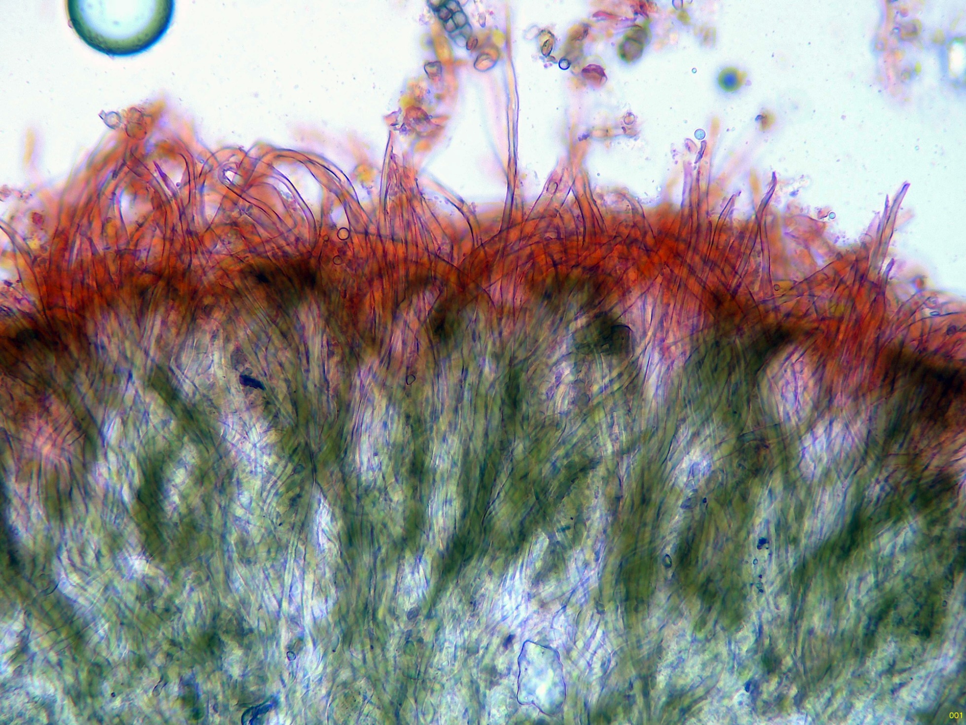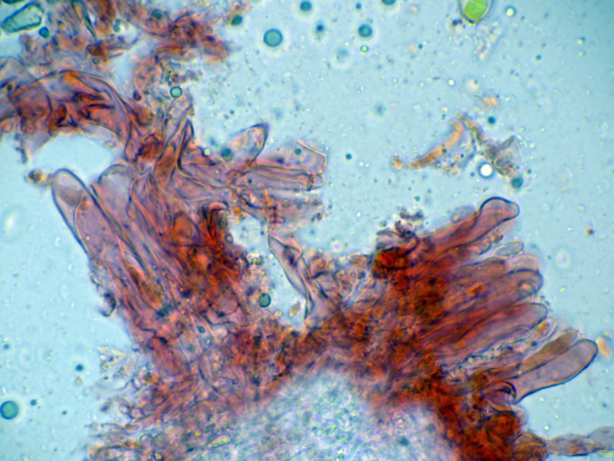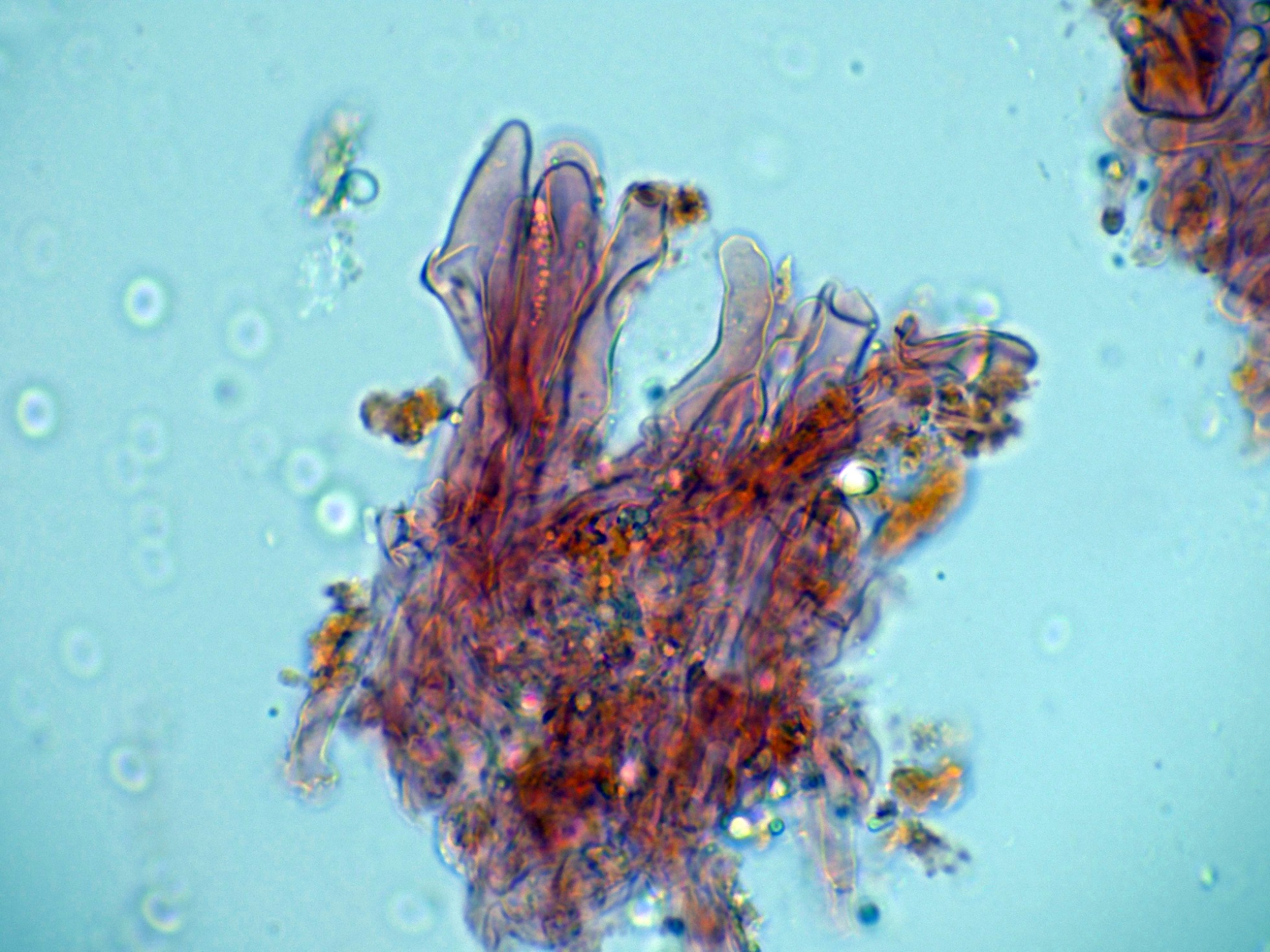 Los pleurocistidios en solución de Rojo Congo: