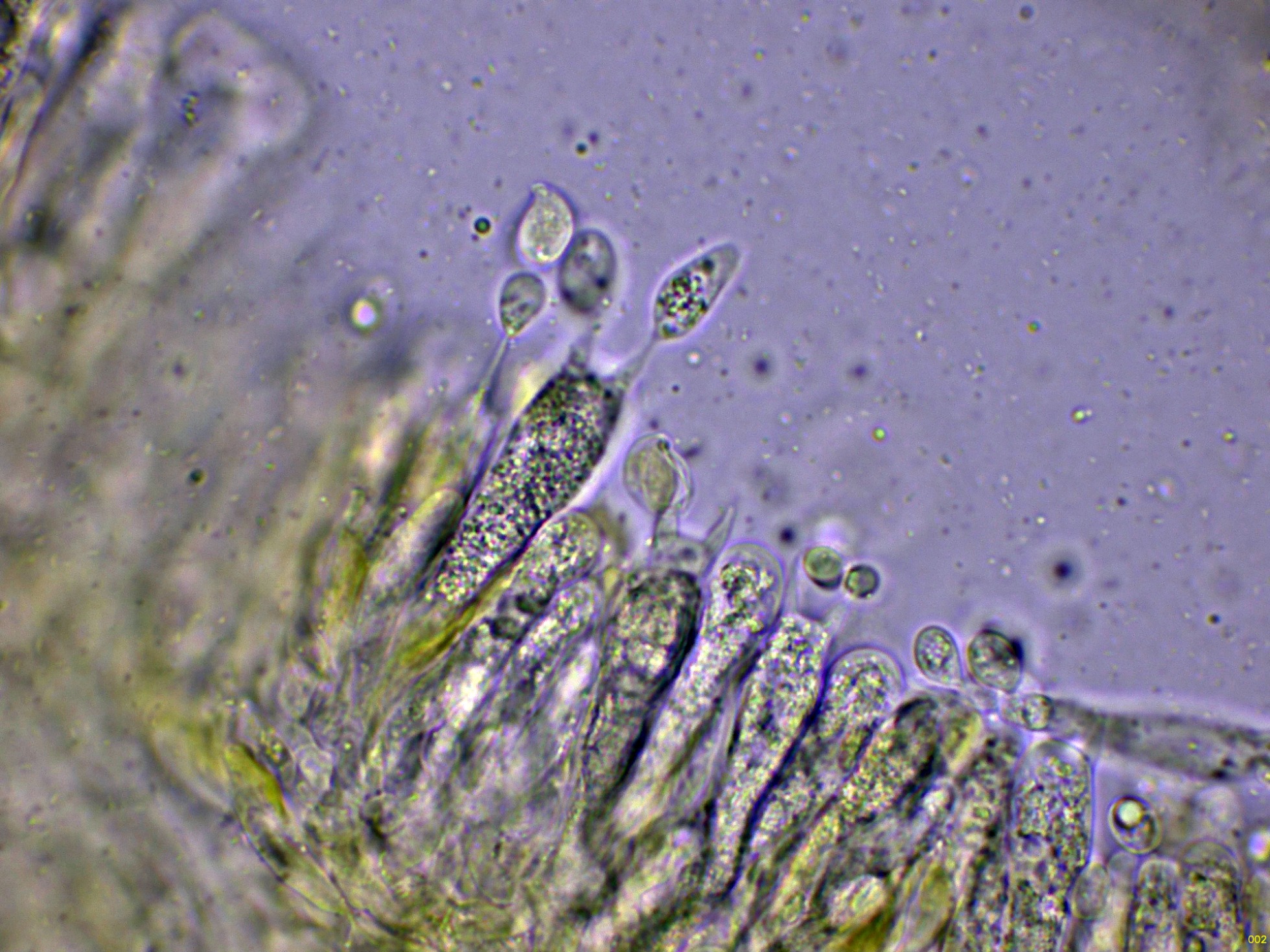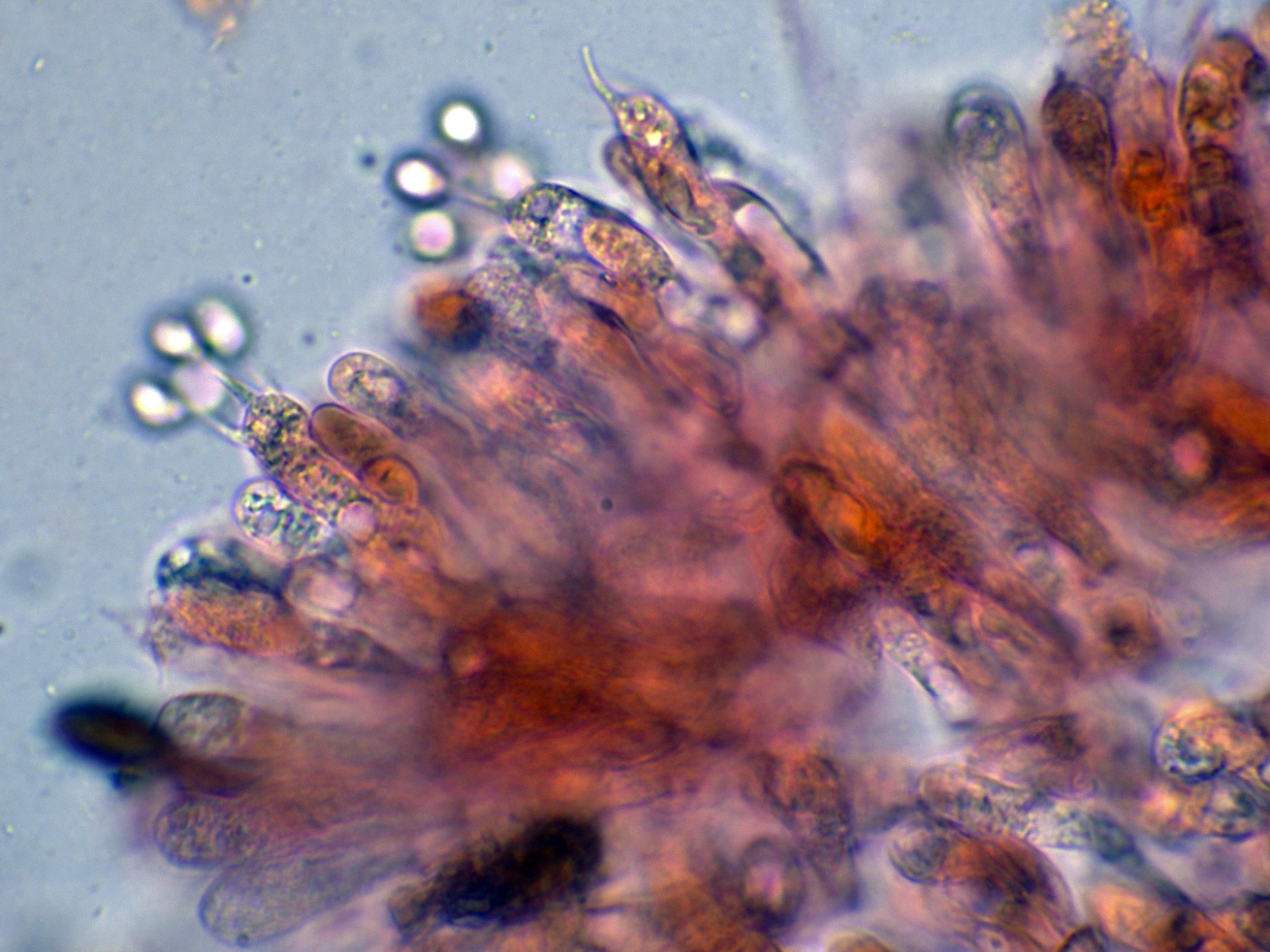 No pude observar cistidios, dejo un par de imágenes de los basidios: