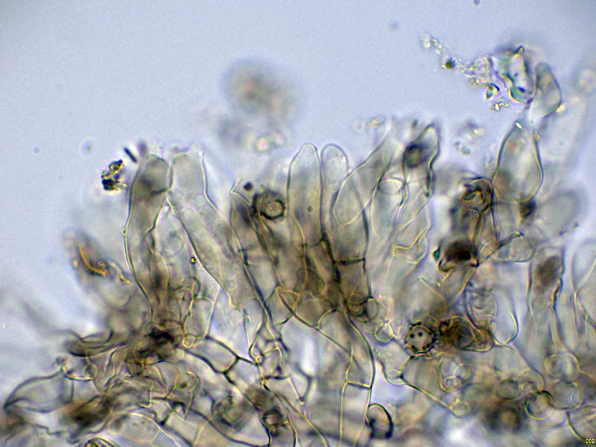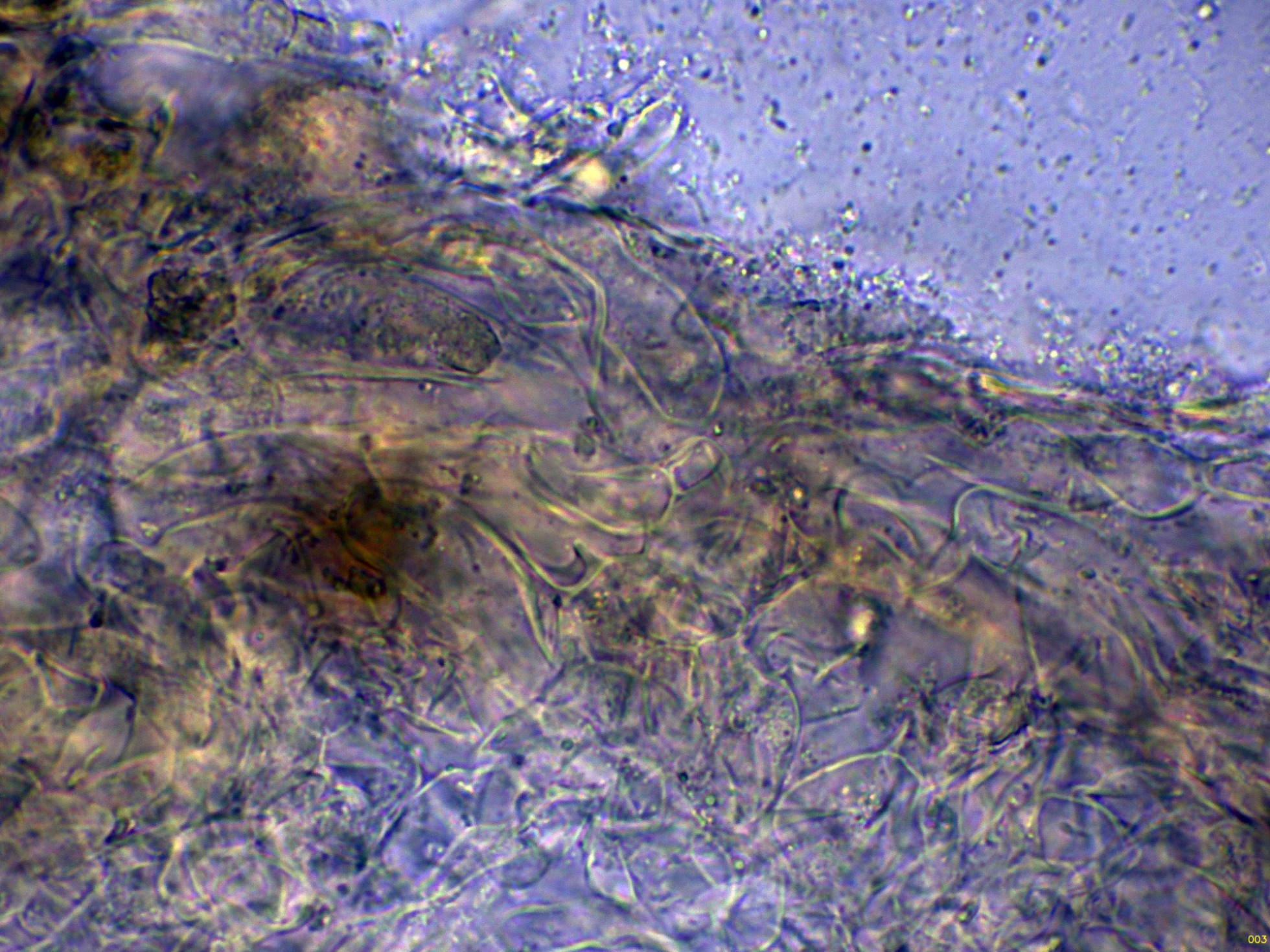 Superficie del basidioma a 20 aumentos: