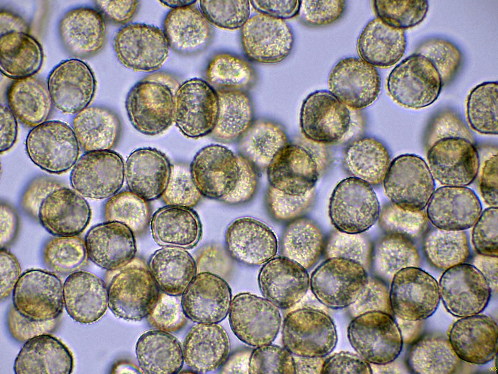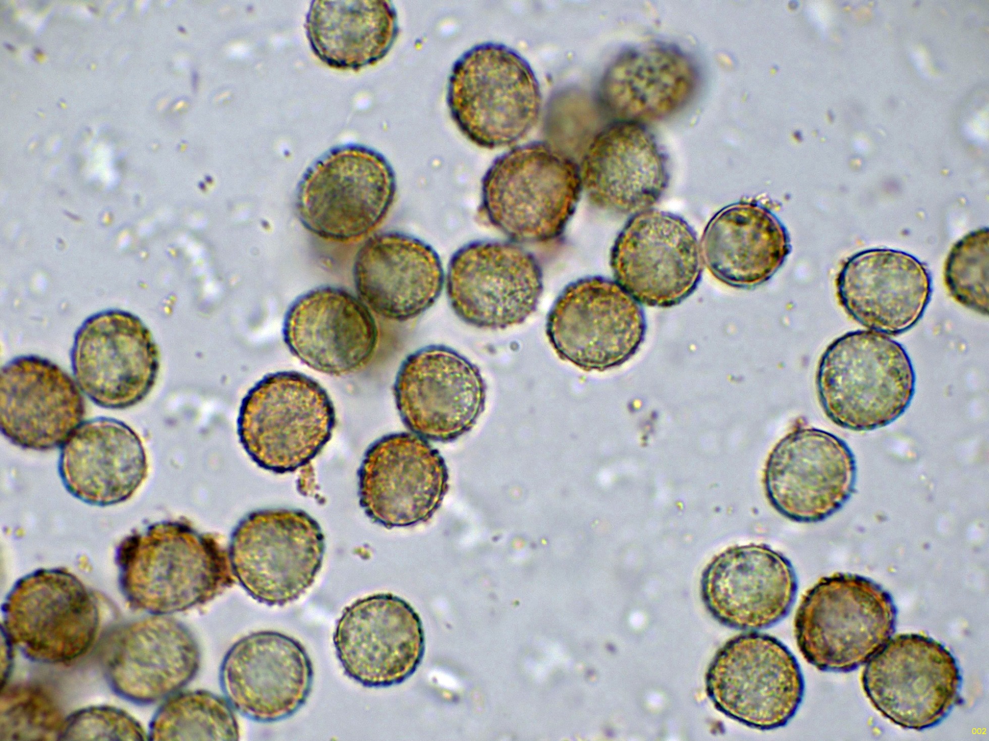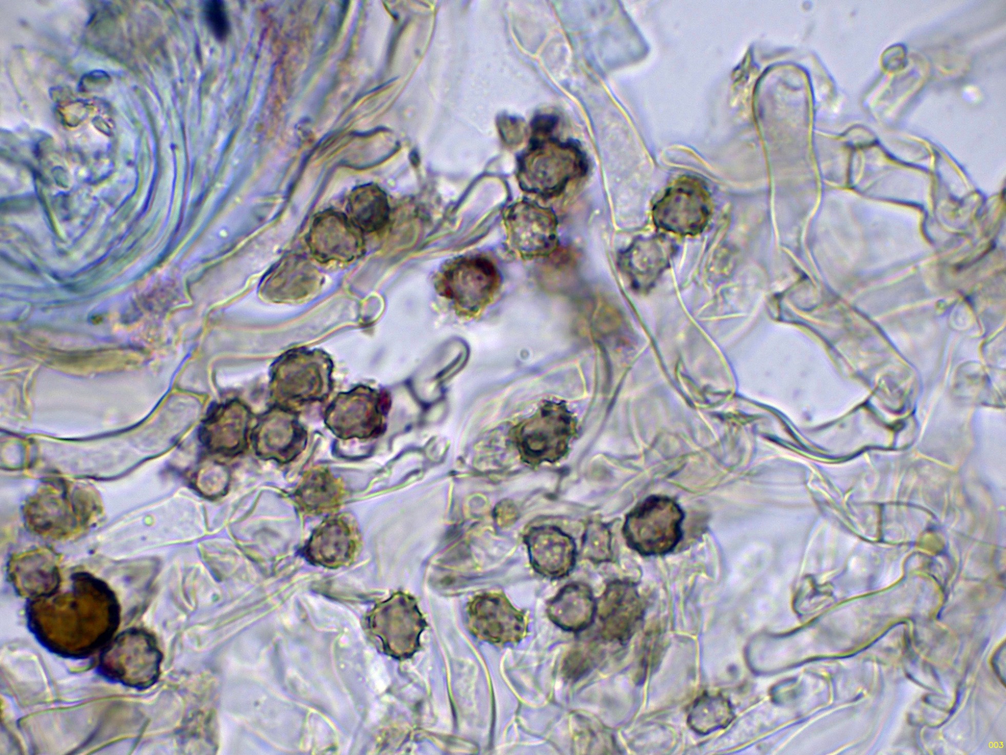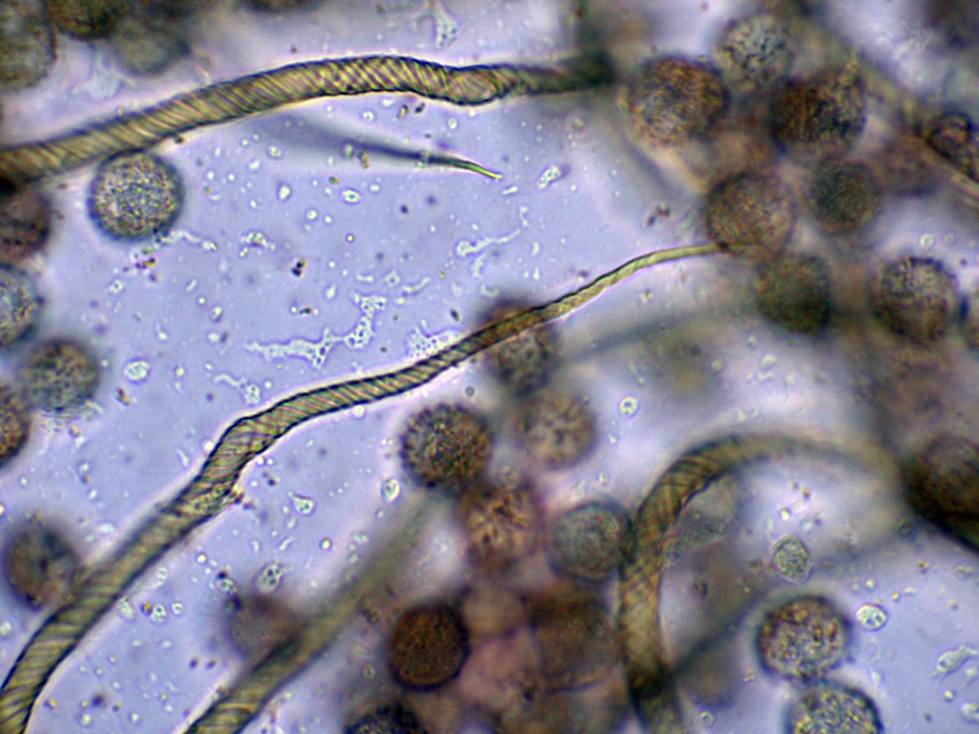 Y por último las esporas en Azul de Lactofenol, para poder observar mejor su ornamentación:
