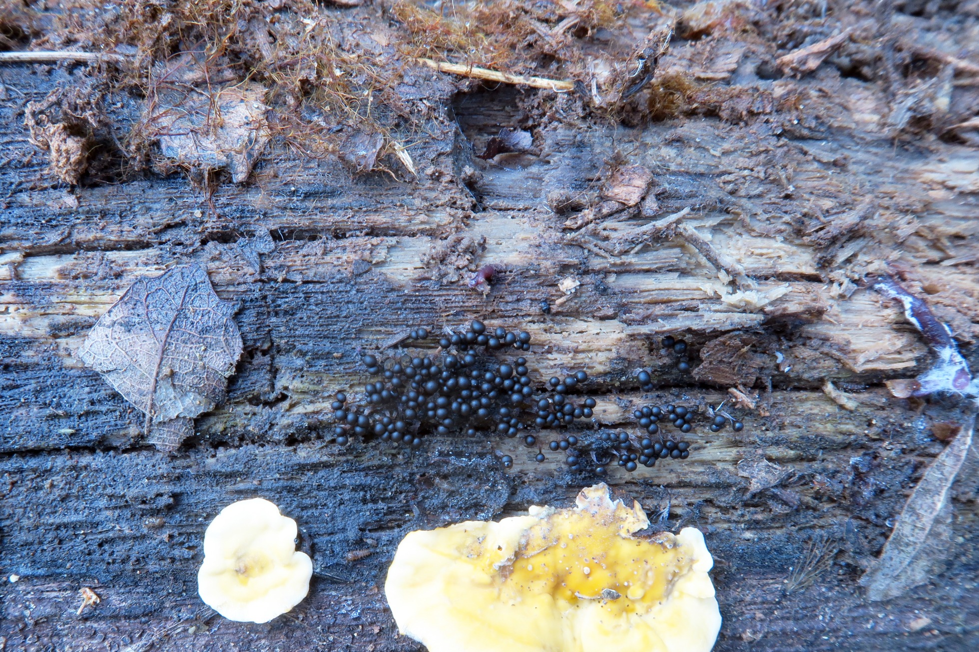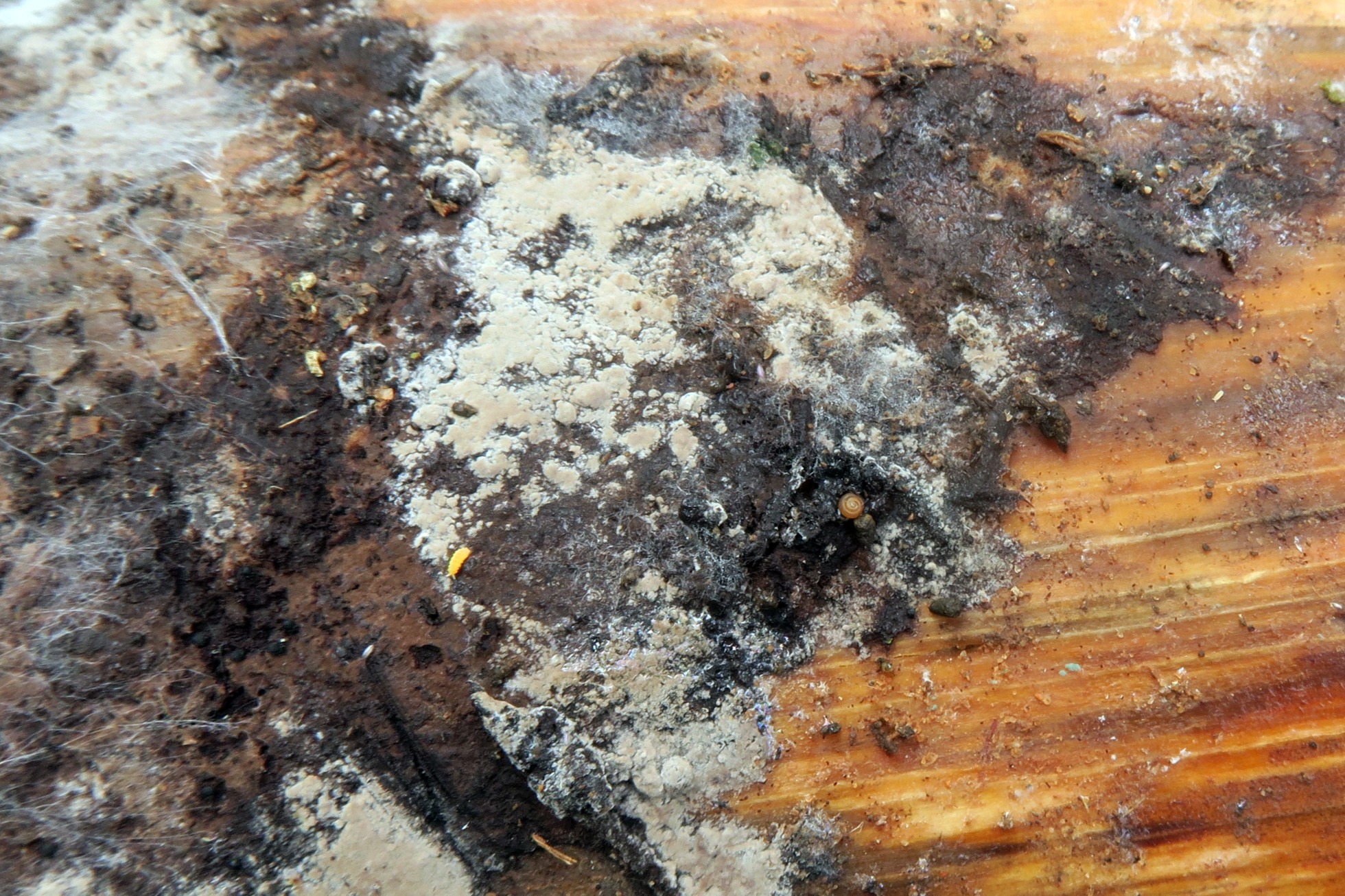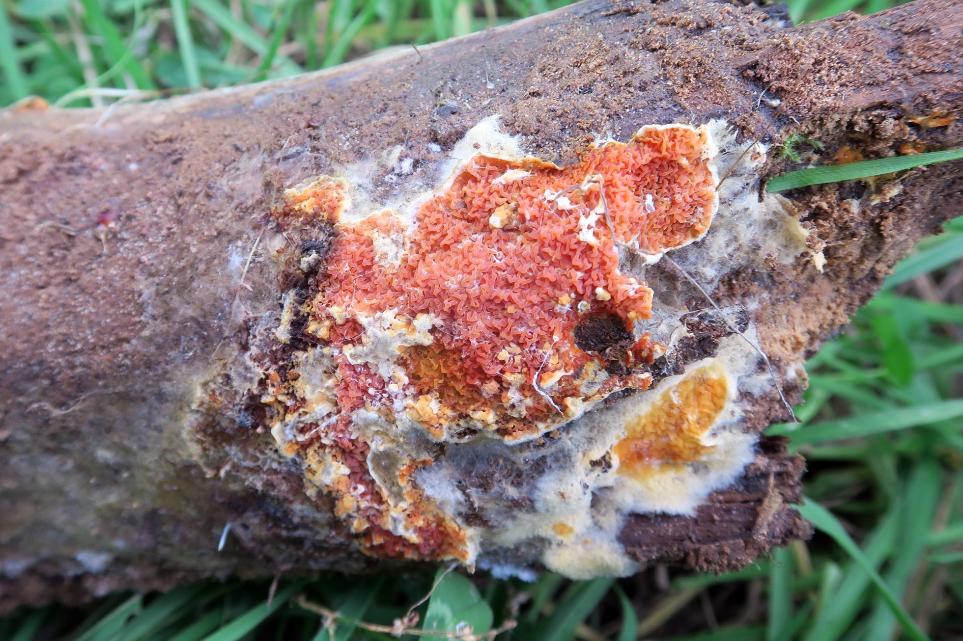 Y para terminar con himenio meruloide, tenemos la Leucogyrophana cf. mollusca: