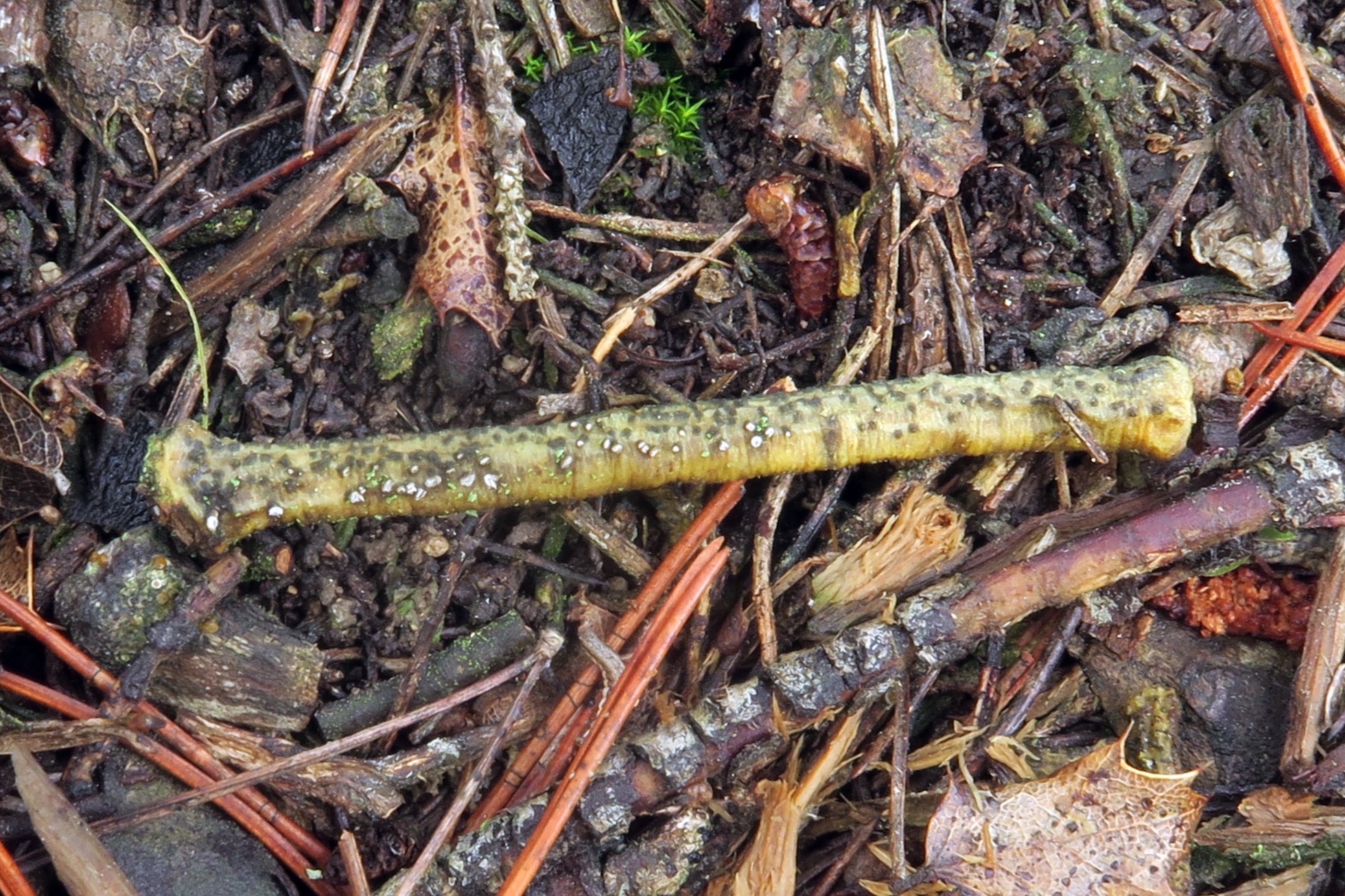 Una diminuta Niaceae, brotando sobre un fino tallo de romero del suelo, aunque un poco desmejorada, la Lachnella alboviolascens: