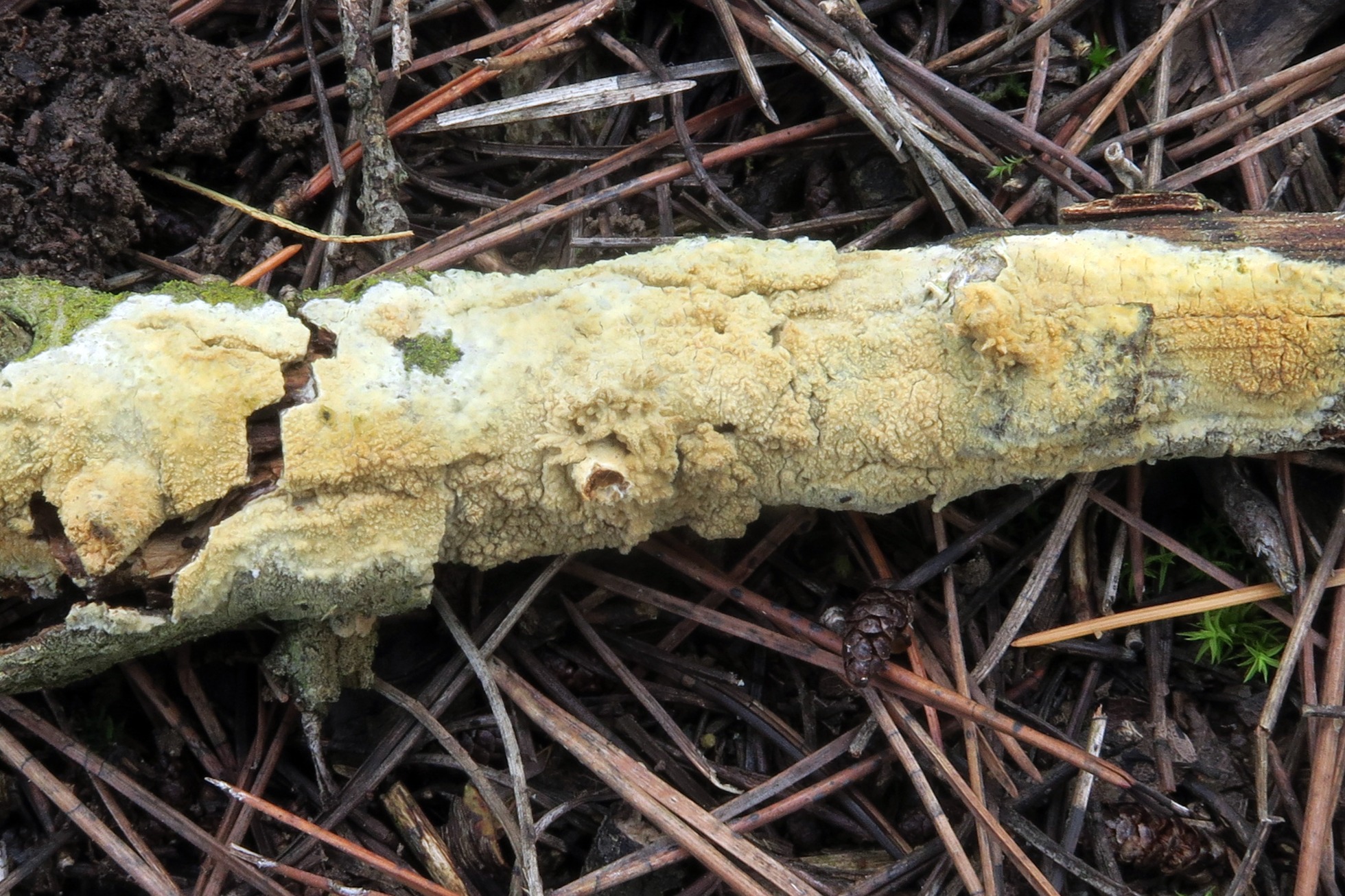 Seguimos con más especies estudiadas durante el Congreso, empezamos con un Corticial propio de madera de coníferas , que aunque no presenta cistidios, si que tiene unos haces de hifas dispuestas paralelamente y con cristalizaciones, la Hyphodermella corrugata: