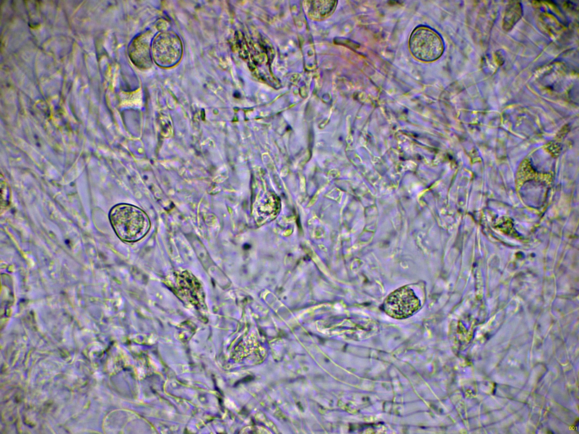 Las hifas subhimeniales en el mismo medio:
