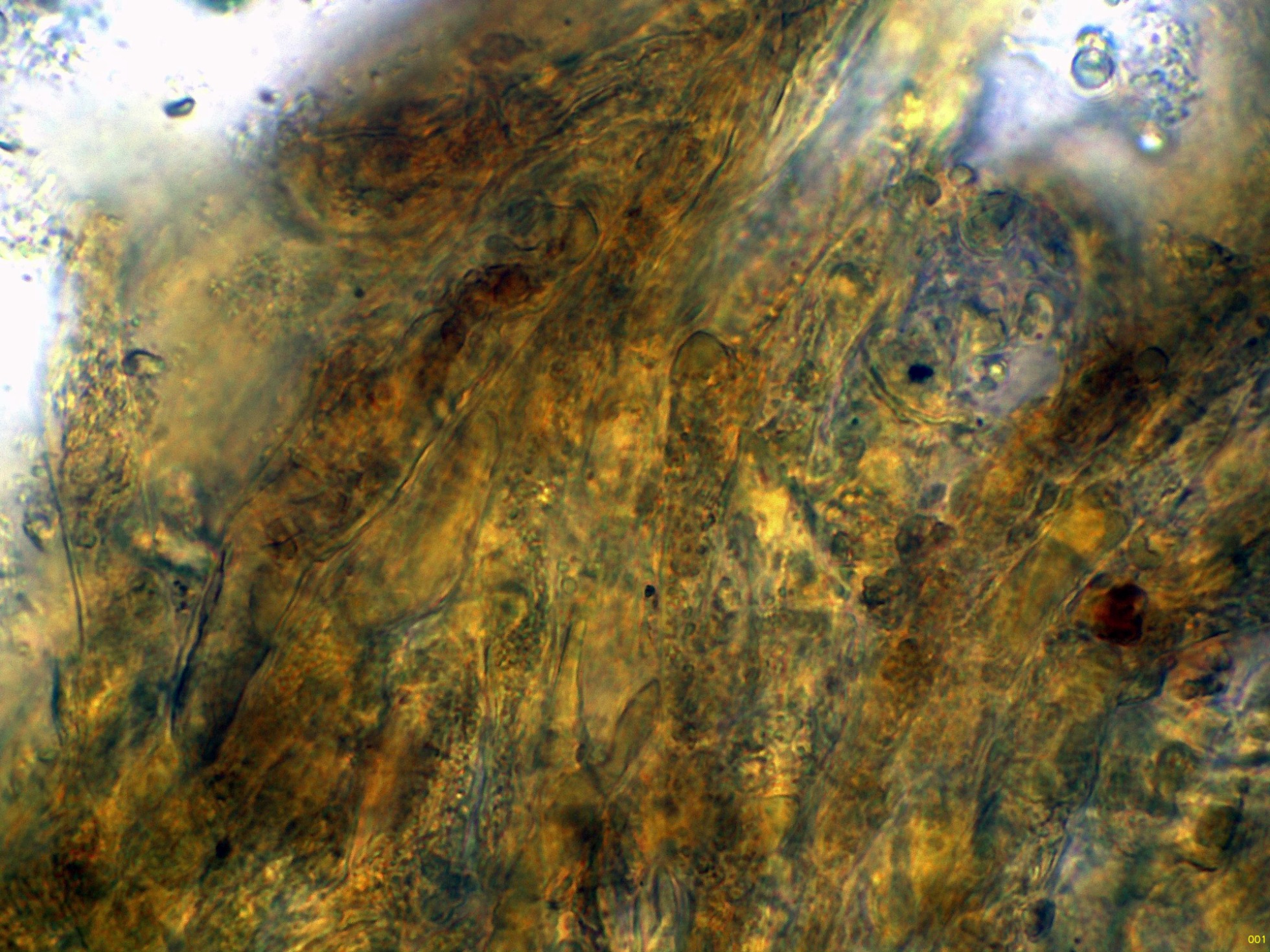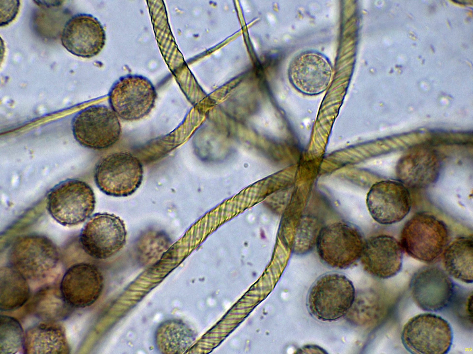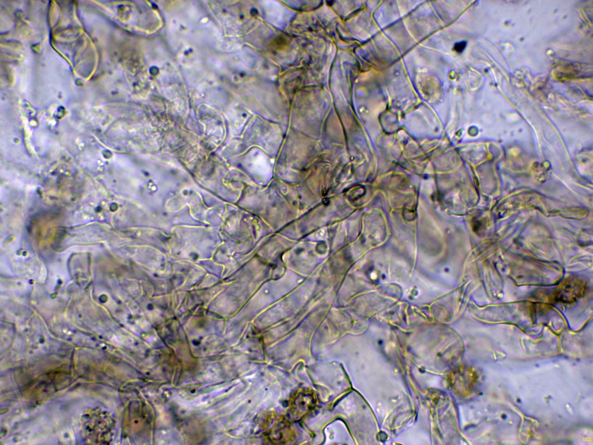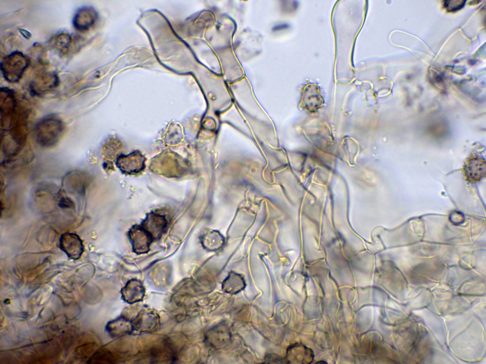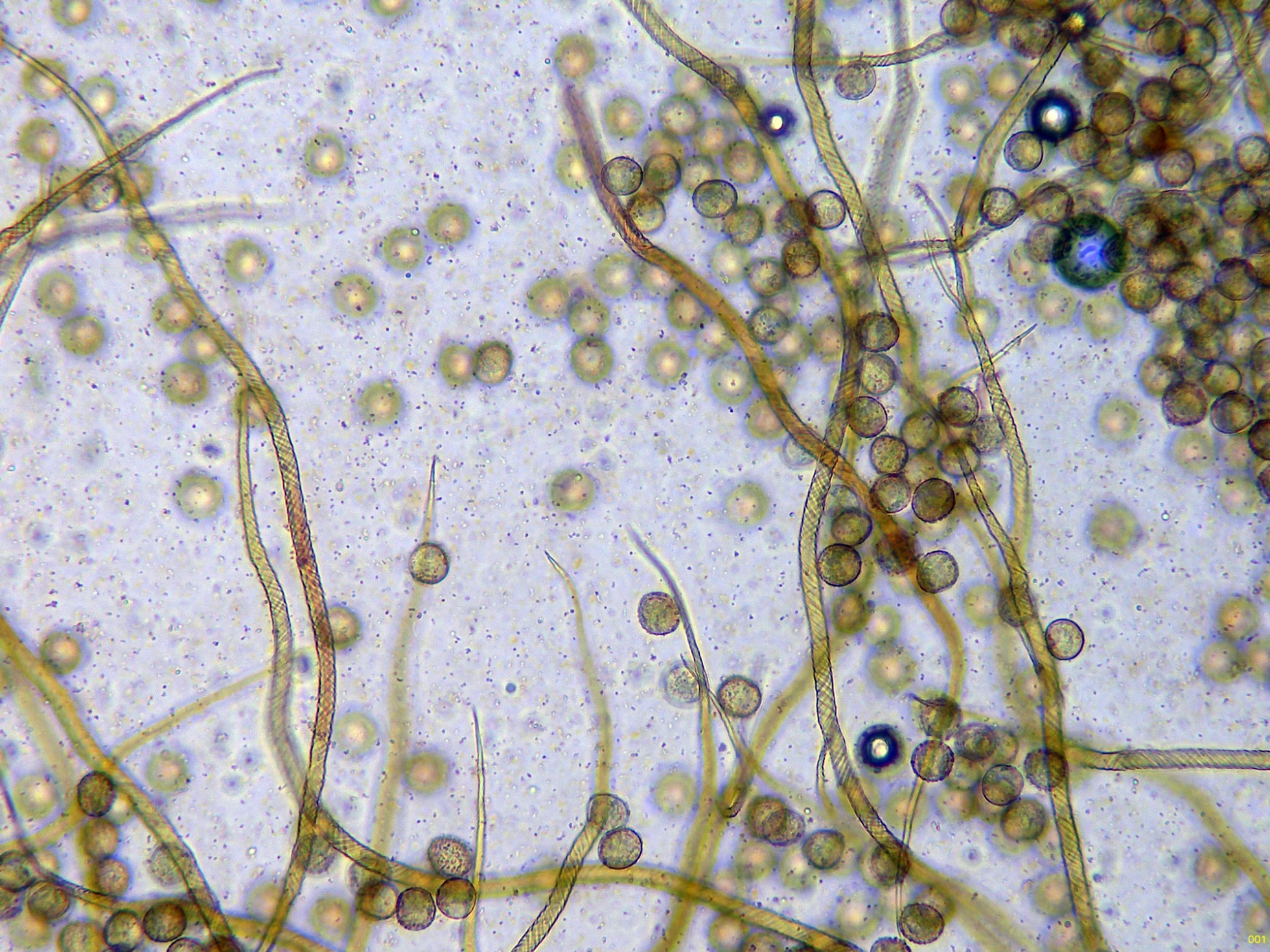 Las hifas de la suprapellis en agua, con pigmento intracelular ocráceo: