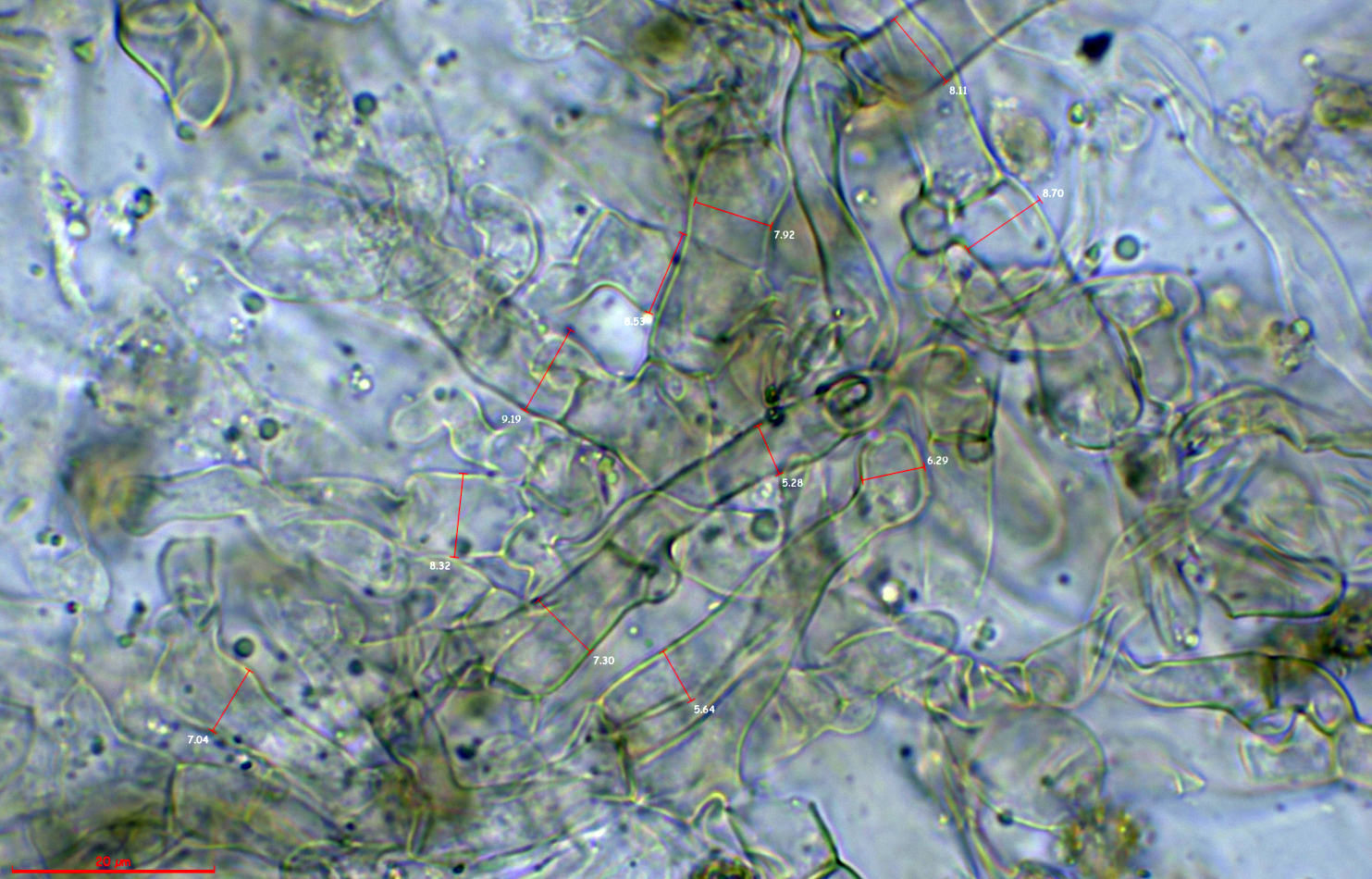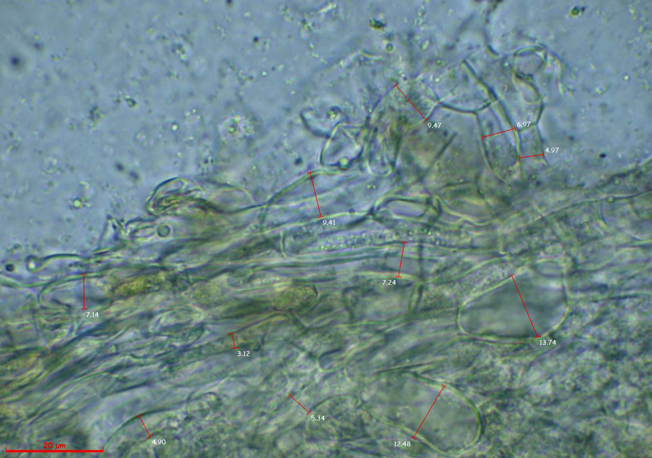 Las hifas de la suprapellis con sus medidas en anchura: