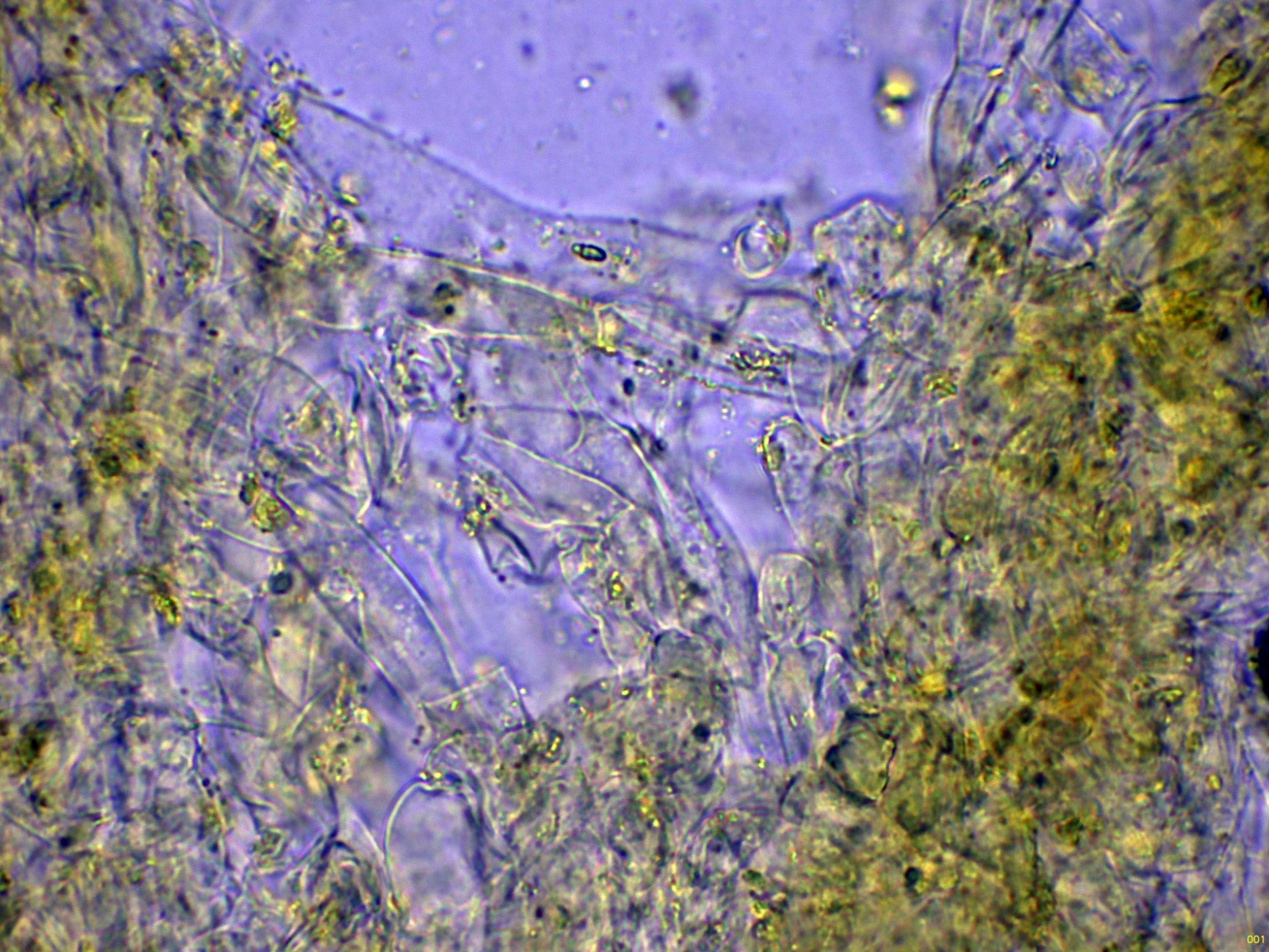 Hifas del excípulo en solución de Azul de Lactofenol: