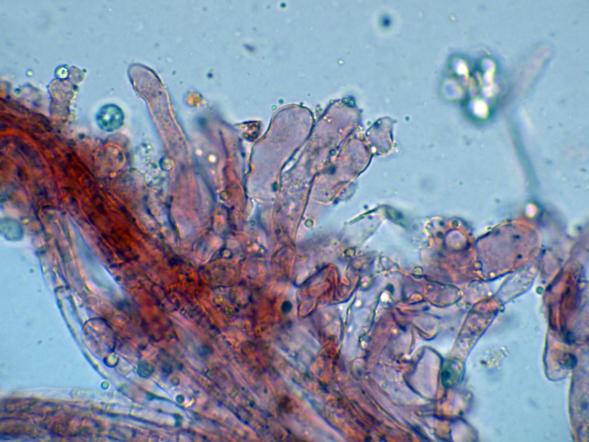 Sus grandes queilocistidios a 400 aumentos: