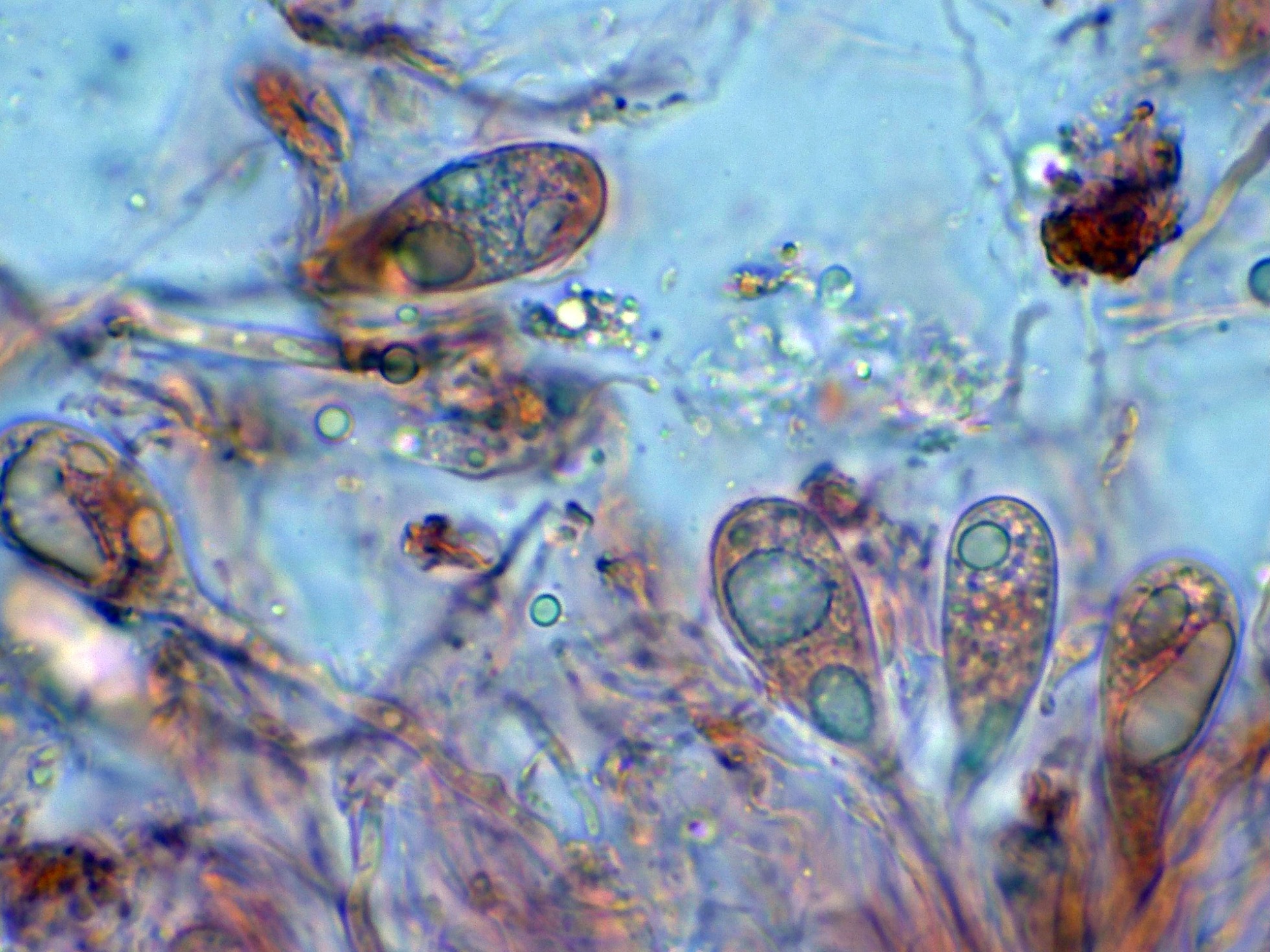 El himenio a 400 aumentos en solución de amoníaco:
